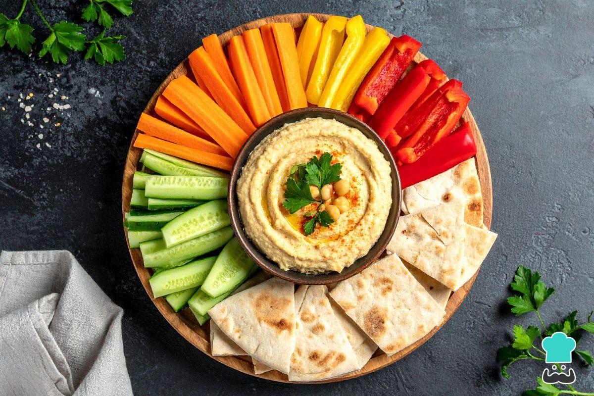 Si buscas entrantes fríos que sirva como aperitivos fríos y originales, te proponemos disfrutar de un rico hummus con crudités, una propuesta de textura suave y sabor especiado que se convertirá en una de las opciones favoritas para todos los comensales. Este plato es muy sencillo de preparar, sobre todo si compras ya hecho el hummus que más te guste, por lo que es uno de esos aperitivos para preparar con antelación, ligero, saludable e ideal para una cena de picoteo sin cocinar.