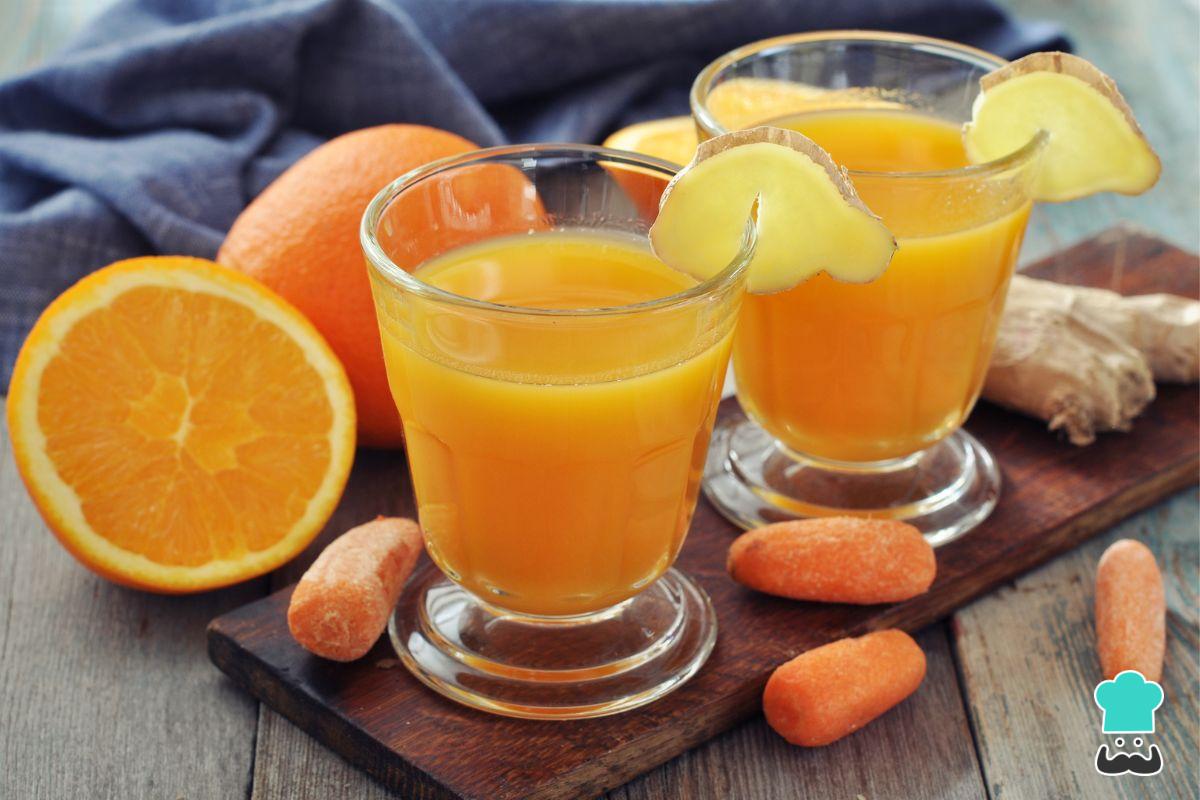 - Licua dos zanahorias peladas y cortadas a trozos, junto al jugo de una naranja y un trozo pequeño de jengibre.