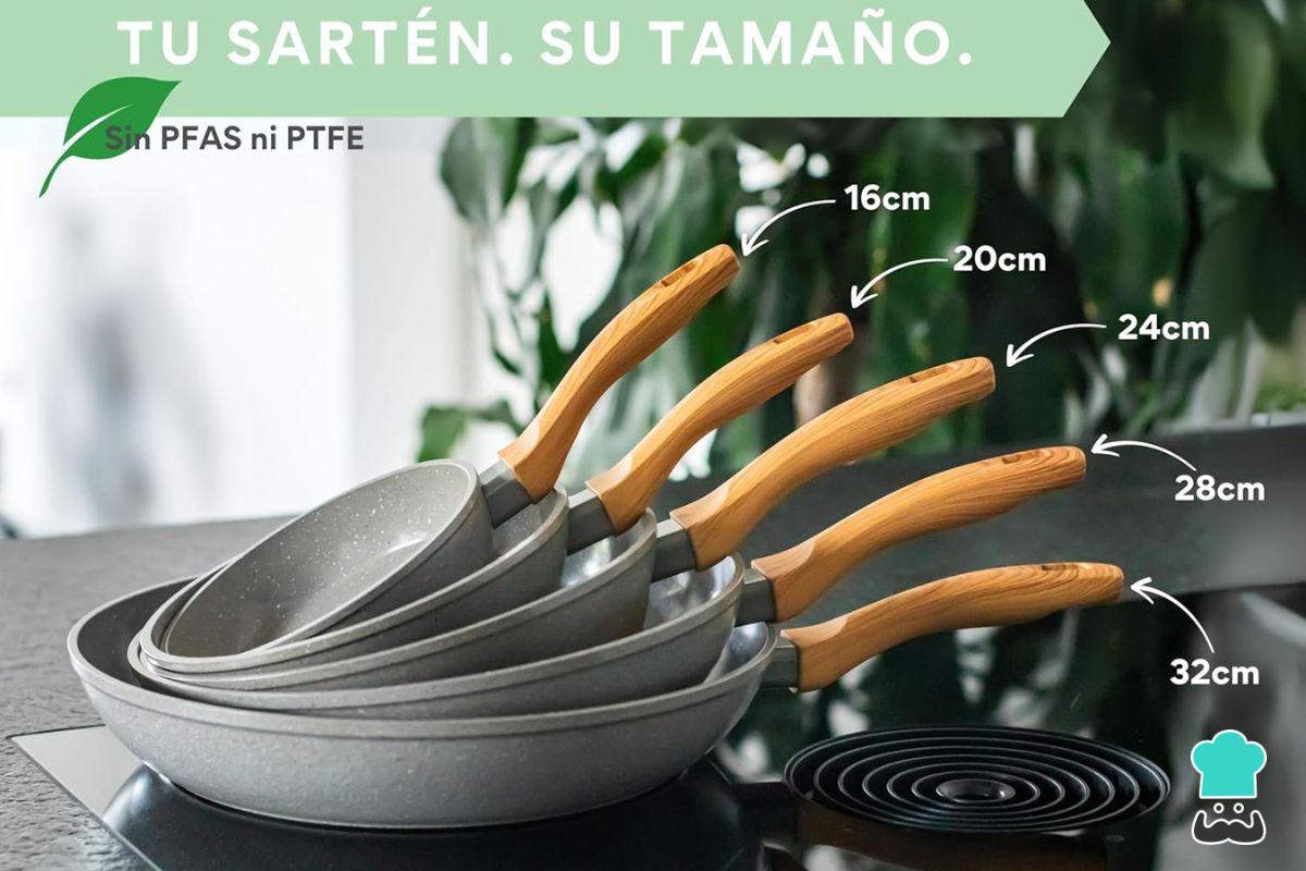 - Prioriza las sartenes sin teflón ni tóxicos y compra aquellos modelos que declaren explícitamente que no suan PFOA ni PTFE. Estas son las sartenes antiadherentes sin tóxicos por excelencia.