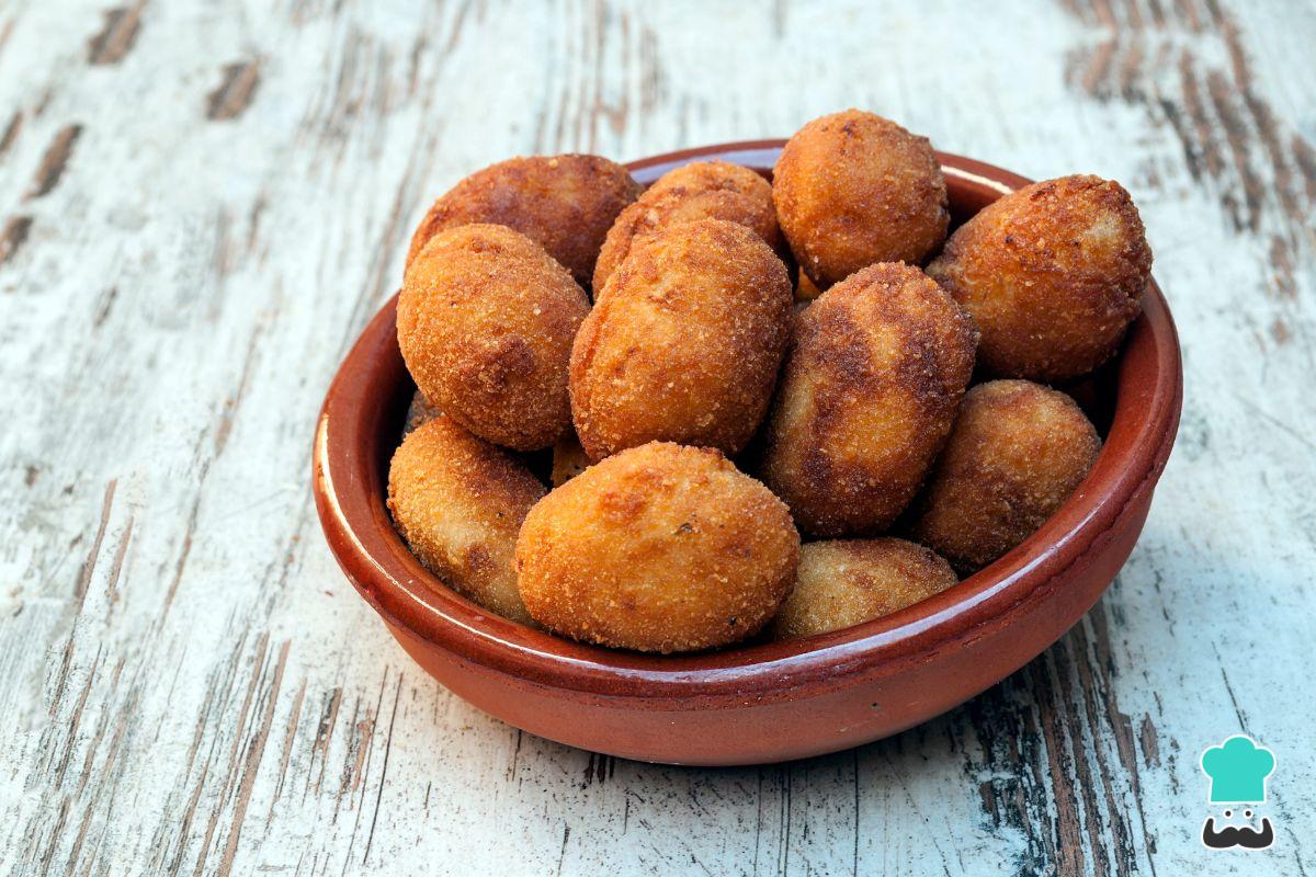 Crujientes por fuera y cremosas por dentro, así son las croquetas, uno de los mejores platos españoles, la tapa reina. Elaboradas con una base de bechamel, podrás encontrar croquetas de múltiples sabores: cocido, jamón ibérico, pollo, bacalao, calamar en su tinta, setas... ¡Aptas para todos los paladares! Las croquetas son una de las recetas de comidas españolas más queridas y versátiles y una de las tapas más representativas de la cocina española.