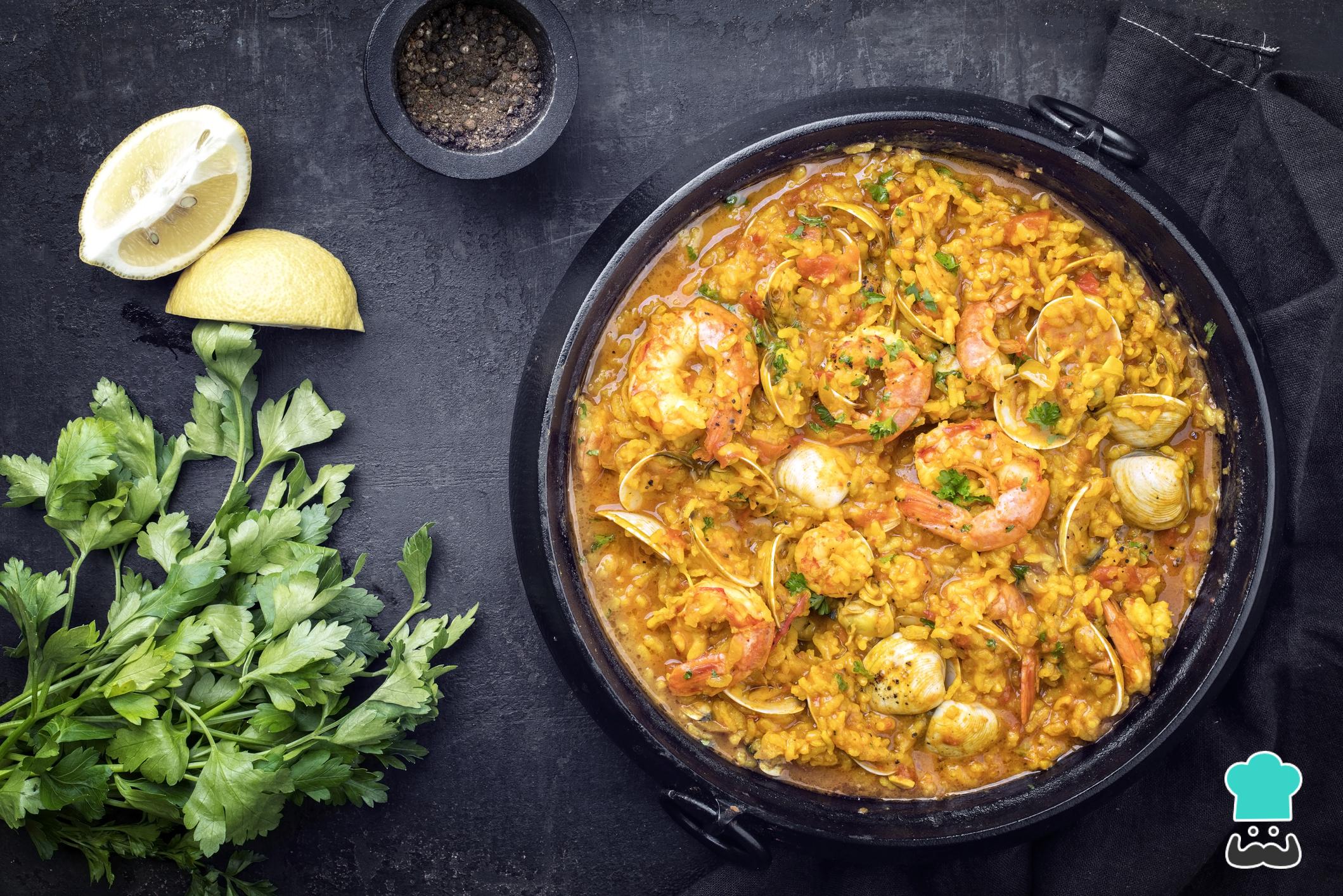 Utilizamos una olla en la que echamos dos cucharadas de aceite. A fuego medio, echamos el ajo, la cebolla para que se sofrían. Luego añadimos el tomate y más tarde echamos el arroz y el caldo junto con un poco de sal. Solo queda dejar hervir el arroz hasta que esté tierno y en ese momento agregar las almejas y los carabineros.