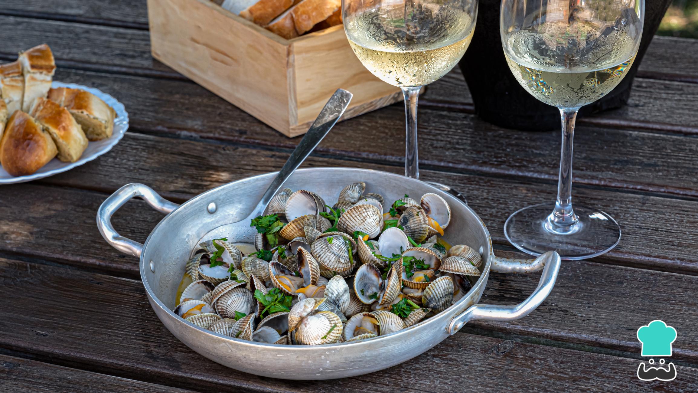 Cogemos una sartén en la que añadimos una pizca de sal, 2 cucharadas de aceite de oliva y el ajo para que se vaya dorando. En este punto debemos agregar con cuidado el chorro de vino blanco y, cuando se haya reducido a la mitad, incorporamos los berberechos. Tan solo queda esperar que se abran y decorar con un poco de perejil al servirlos en el plato.