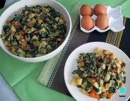 Cuando estén dorados añadimos a este refrito las acelgas, la patata y la zanahoria, rehogamos, ponemos apunto de sal y servimos al instante.