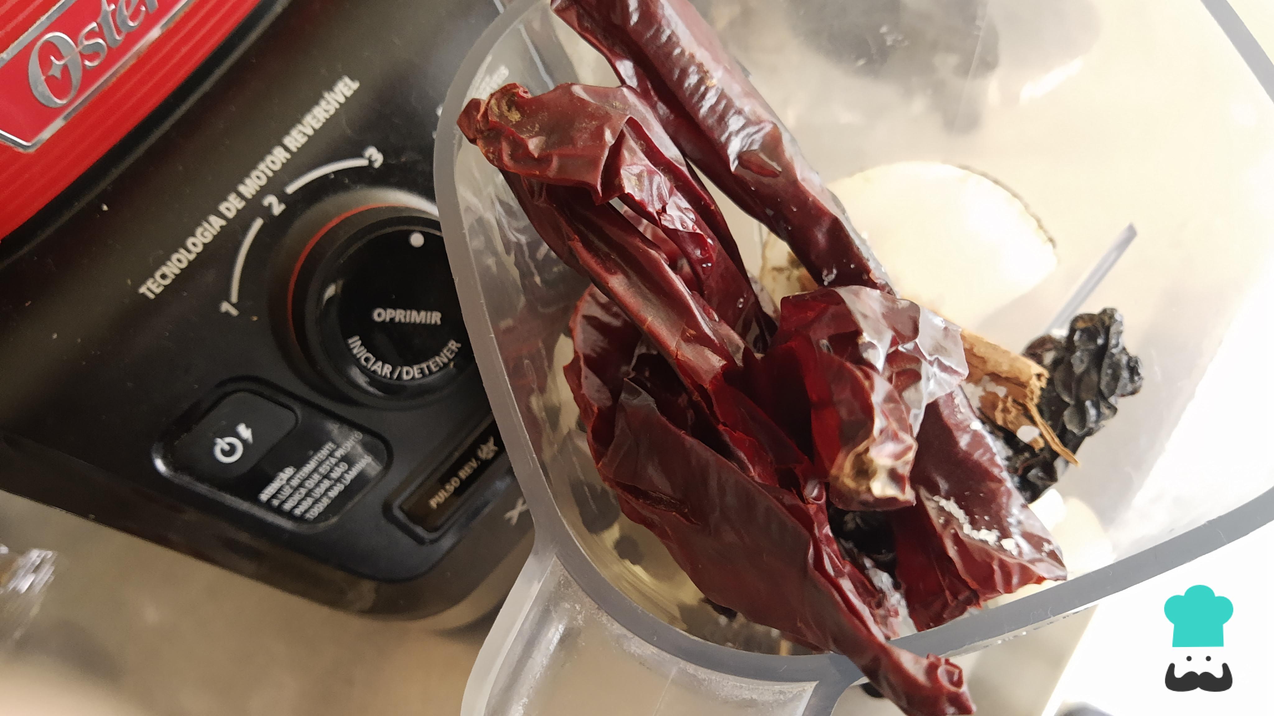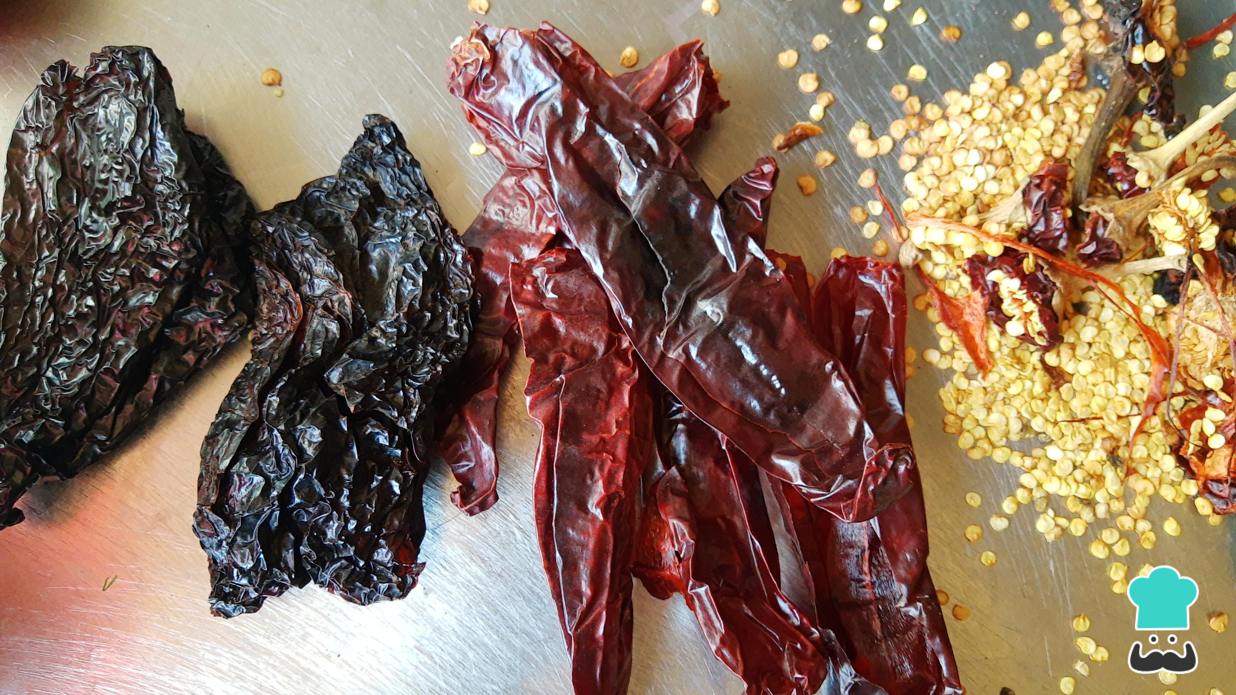Truco: puedes hidratar los chiles con anticipación en una olla con agua caliente para que sea más fácil moler.