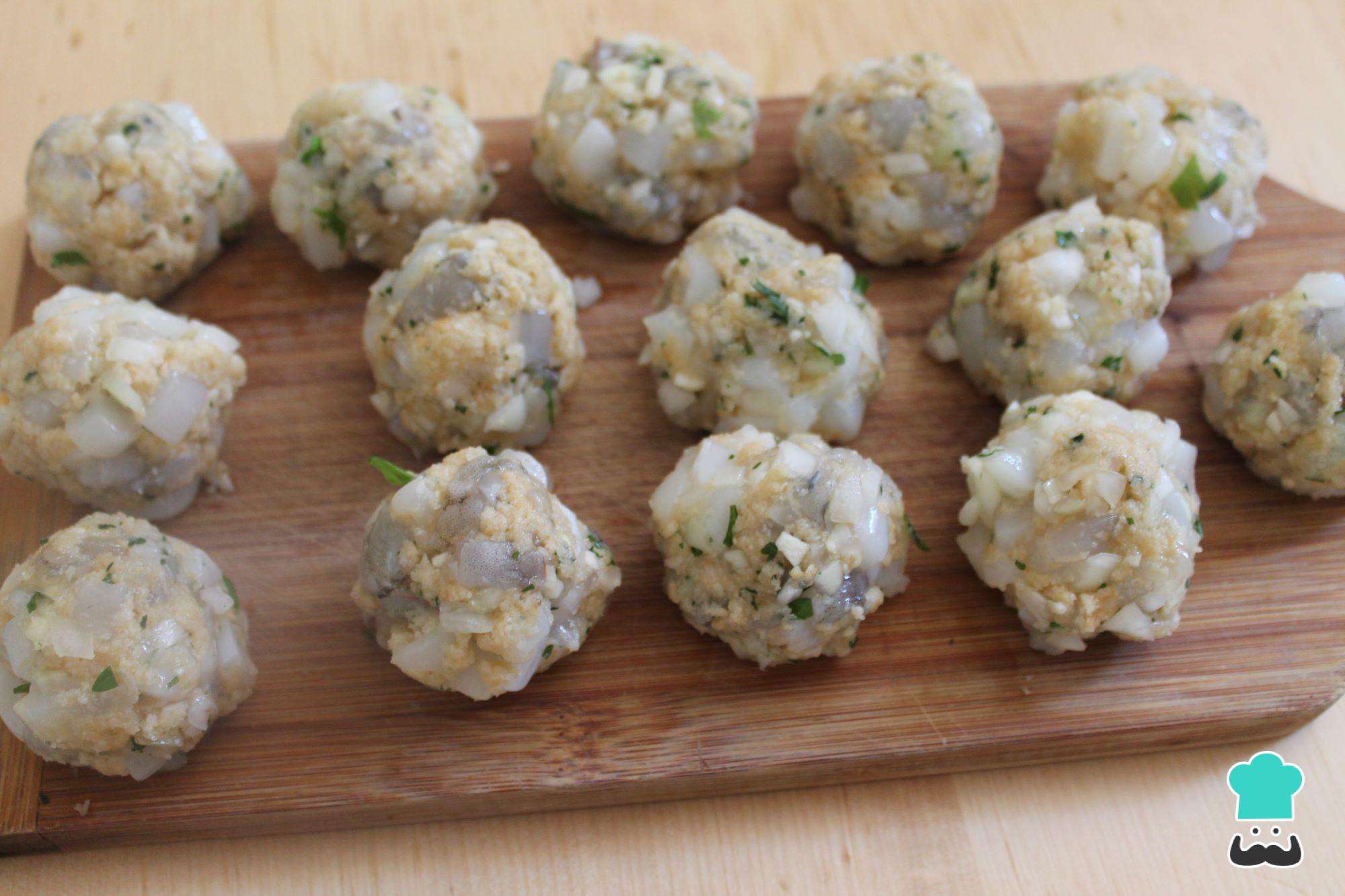 Ve formando con las manos pequeñas bolitas apretando bien para que queden firmes. Te saldrán aproximadamente unas 20 albóndigas.