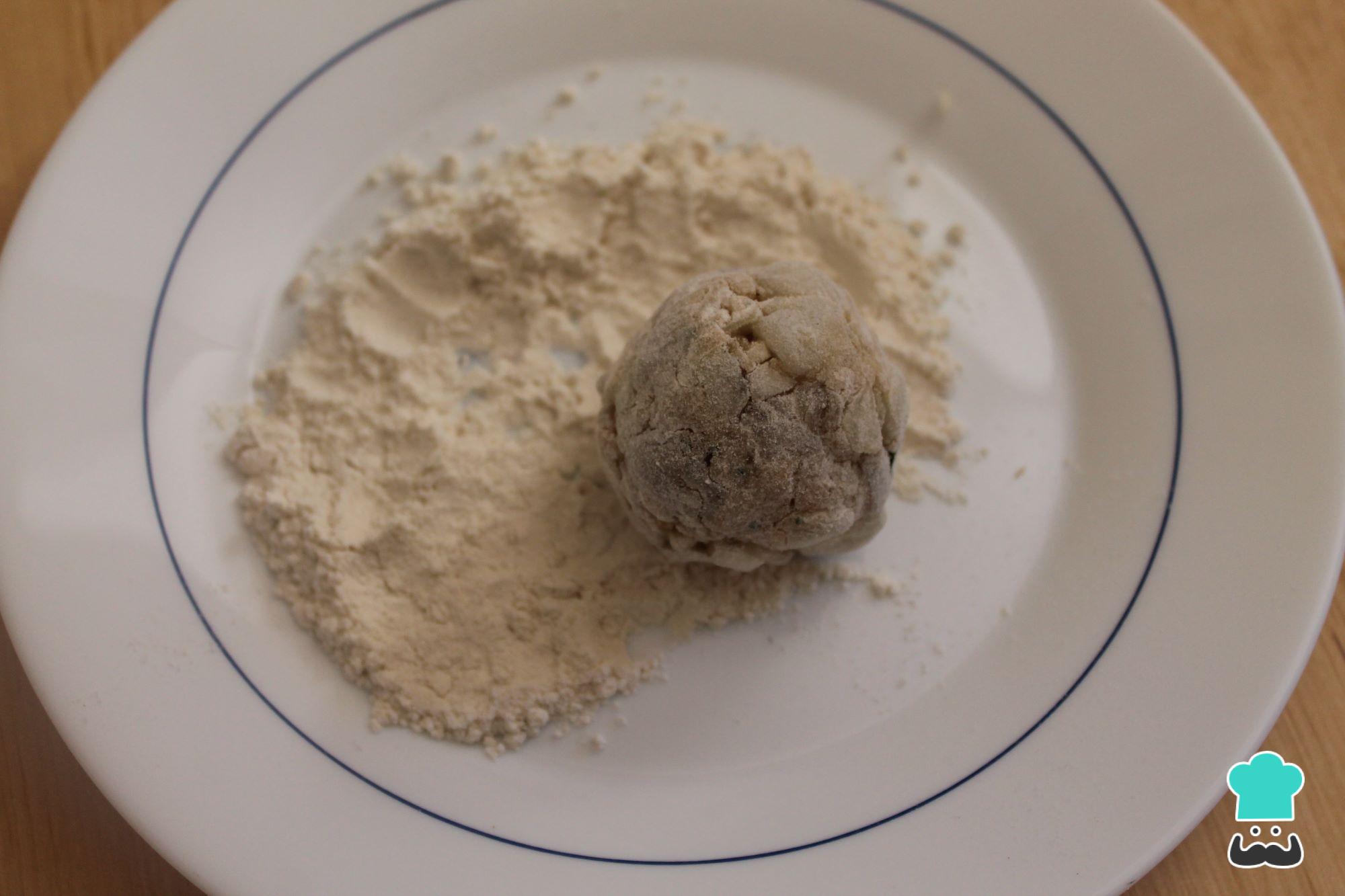 Pasa cada albóndiga por la harina, pero debe quedar una película muy fina, no las enharines en exceso.