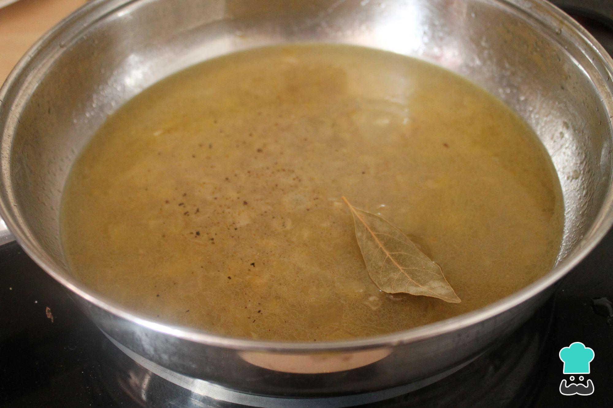 Añade el agua, sal al gusto, el laurel y deja reducir a fuego suave hasta que la salsa espese un poco. Ve probándola de sabor por si tienes que rectificar de sal conforme la salsa vaya reduciendo.