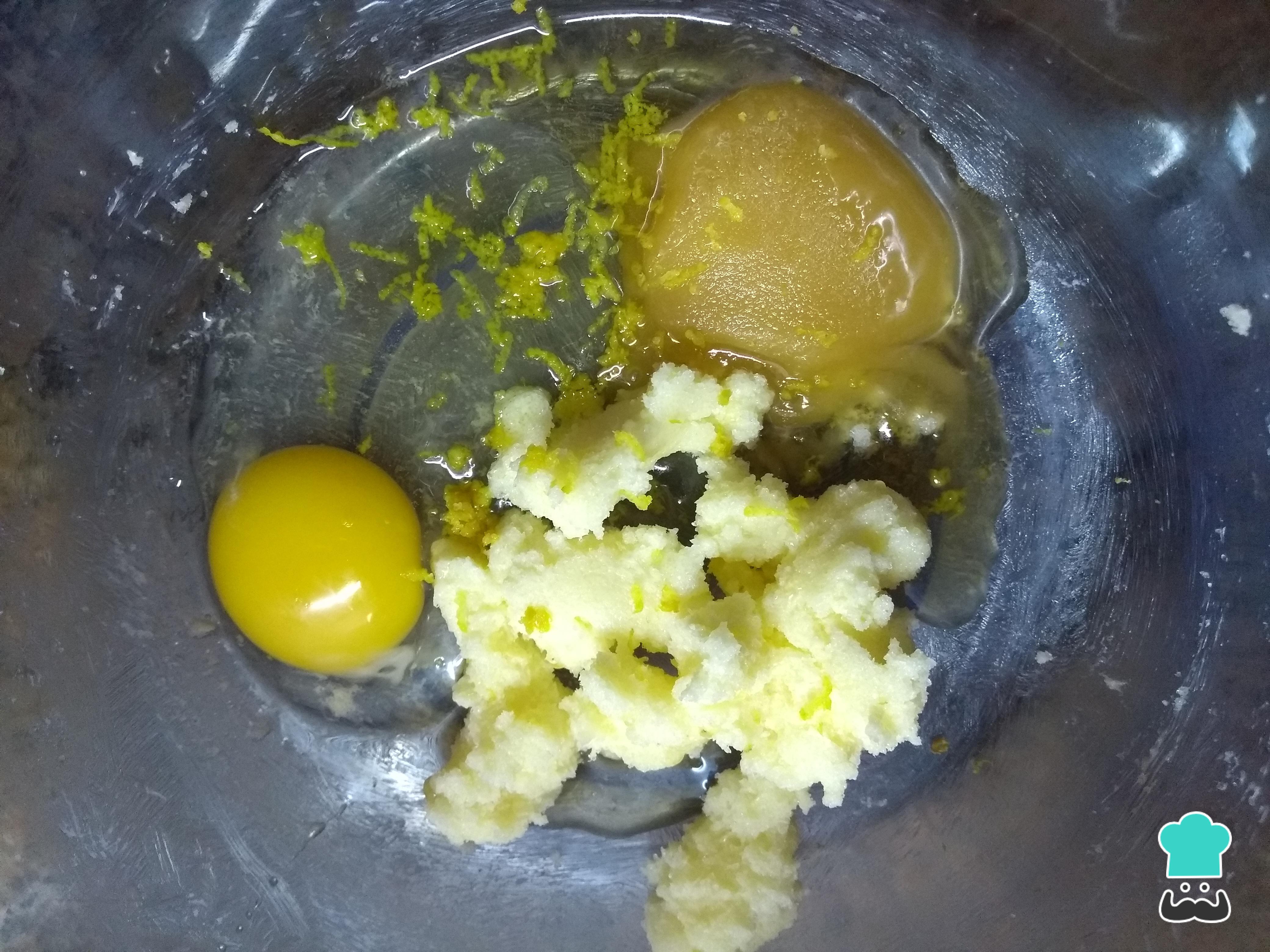 Cuando se hayan unido los ingredientes, agrega el huevo, la miel y la ralladura de piel de limón. Integra con batidor de mano o espátula.