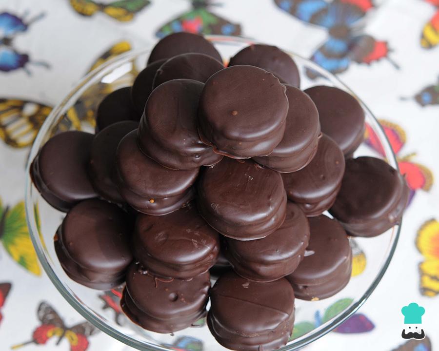 Cuando estén fríos, coge un disco, unta dulce de leche y coloca otro disco encima. Luego, pasa el alfajor de maicena por el coco rallado o báñalo en chocolate fundido, como tú prefieras. En caso de querer cubrirlos de chocolate, es necesario que uses chocolate para fundir para que puedas reservaros en el frigorífico y endurezca la cobertura. ¡Y ya tienes tus alfajores de maicena argentinos preparados y listos para ser devorados!