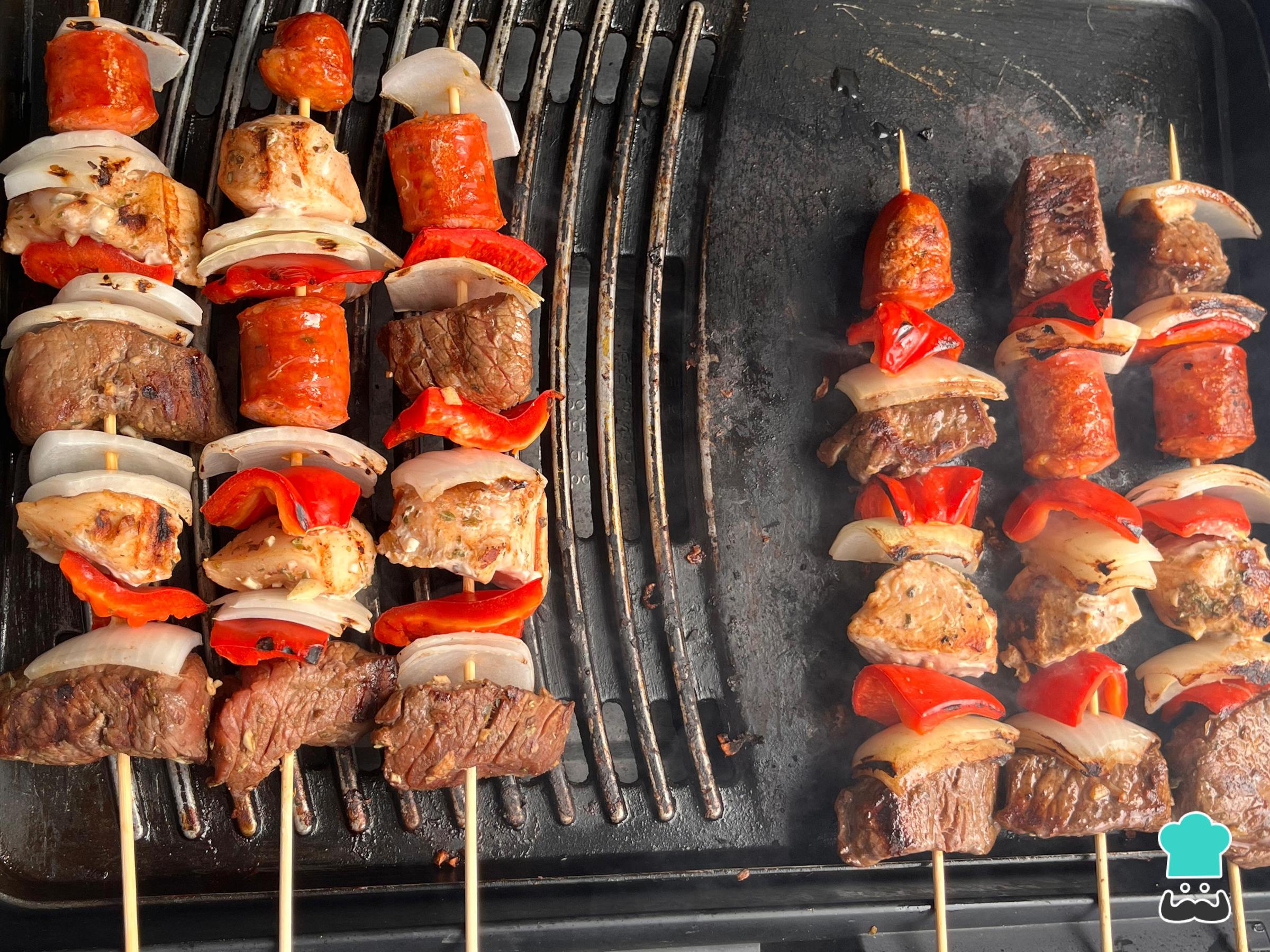 No descuides los anticuchos y voltéalos para que se cocinen de forma pareja.