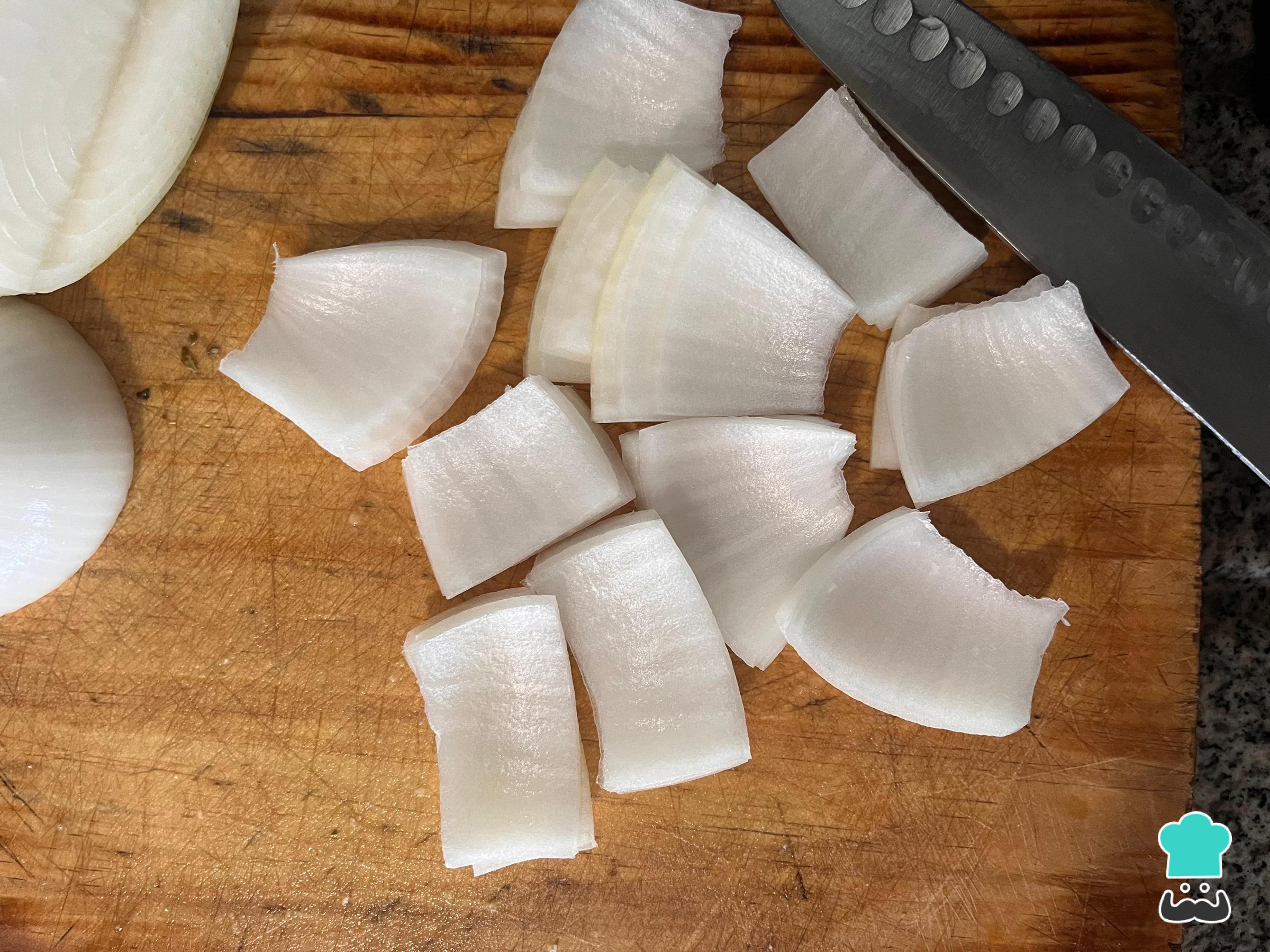 Corta la cebolla en trozos grandes, de 2 cm por 2 cm.