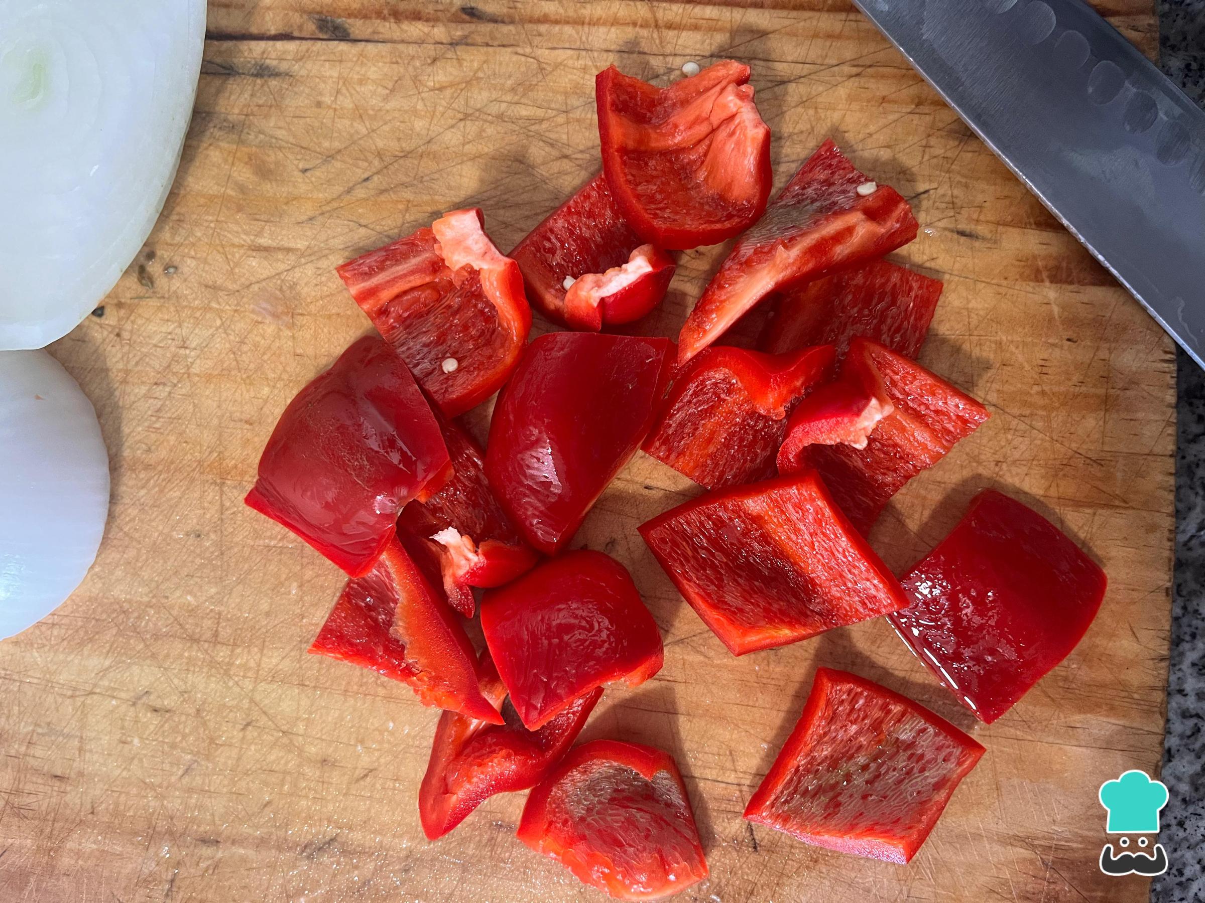 Corta el pimentón en trozos grandes, de 2 cm por 2 cm.