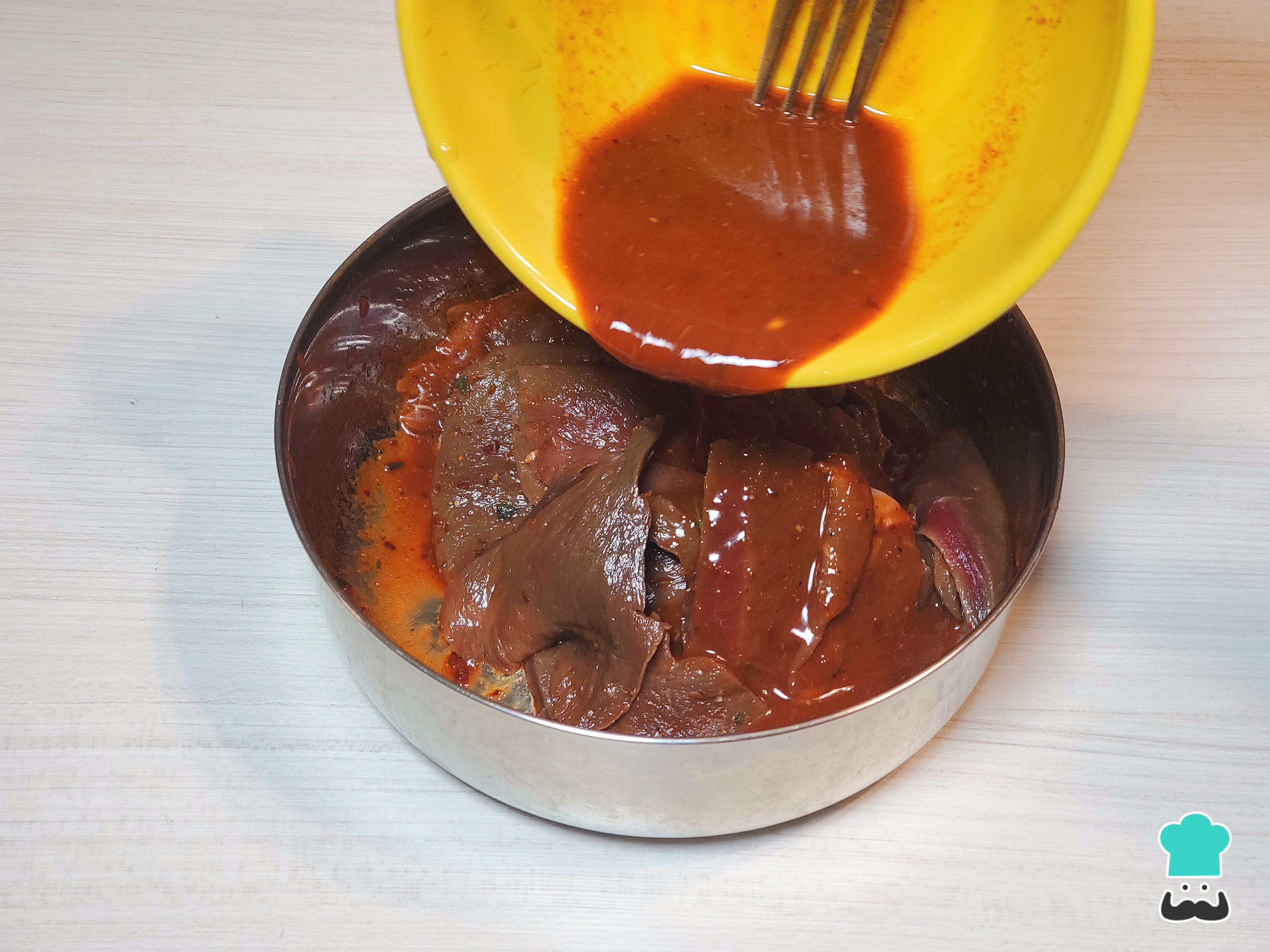 Vierte este adobo sobre las piezas de corazón, cúbrelas bien y deja que repose, mejor si es toda la noche refrigerando.