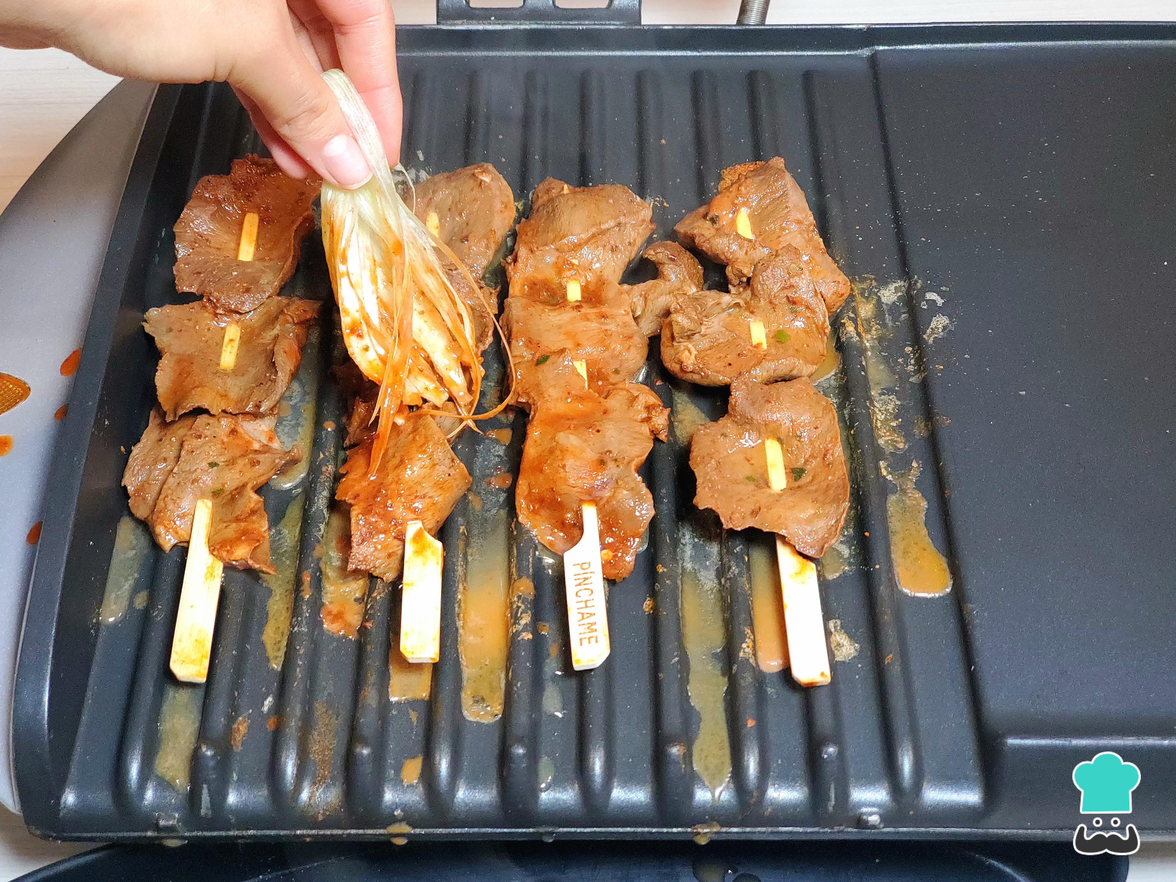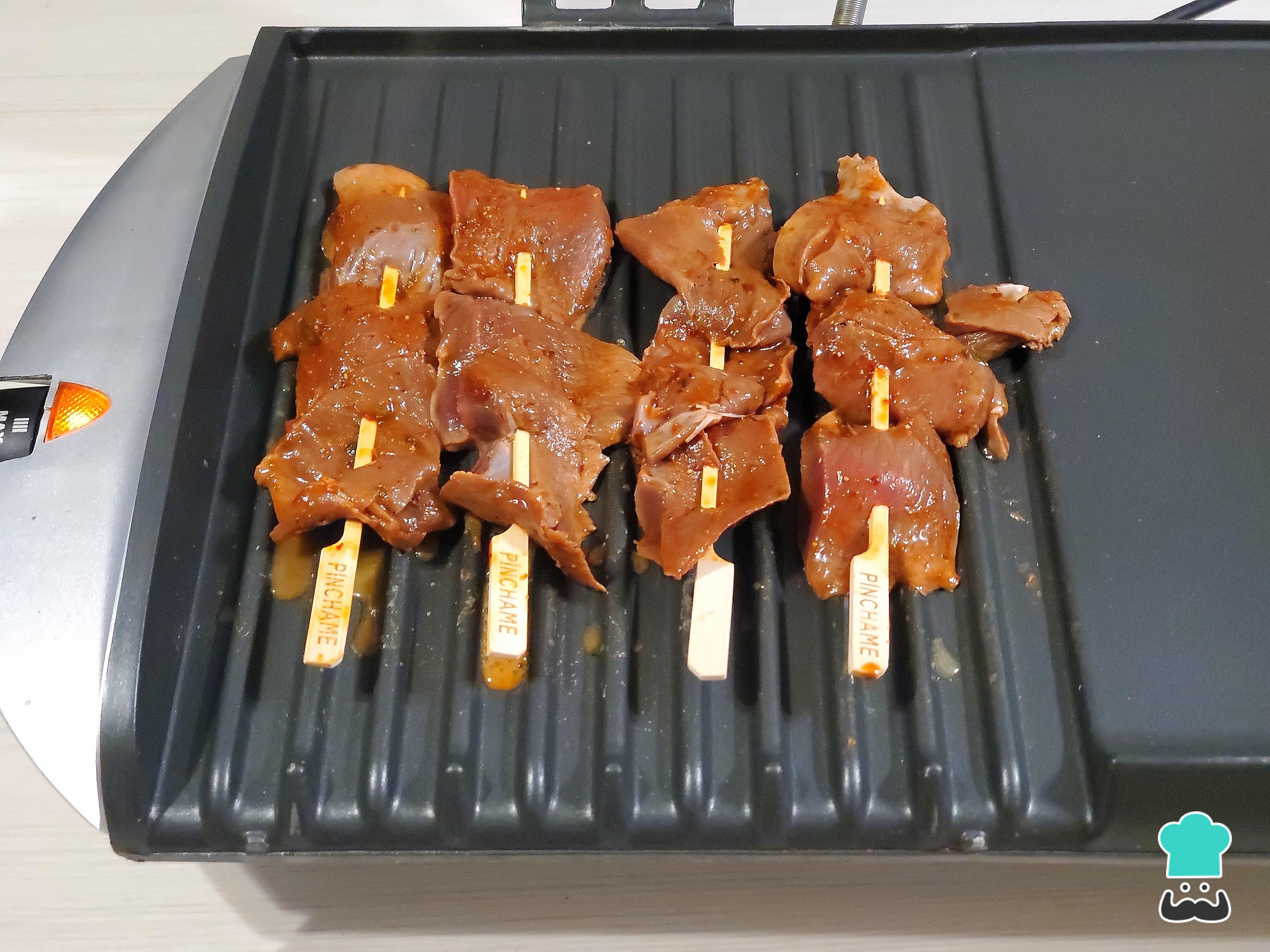 Enciende la parrilla, una plancha eléctrica o, en su defecto, una sartén. Cuando esté caliente, esparce un poco de aceite y coloca los anticuchos encima.