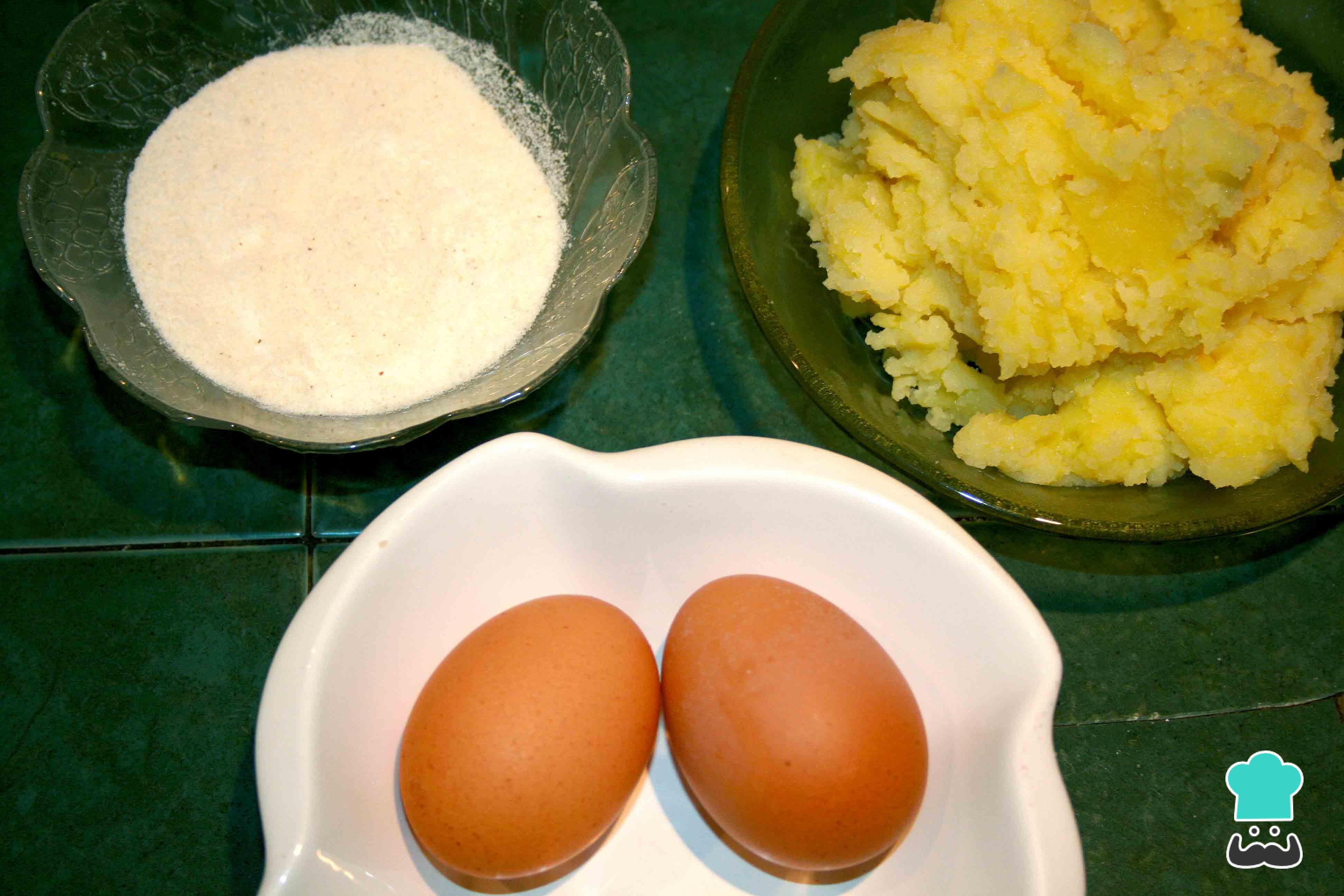 Prepara un puré con las papas. Puedes usar un poco de mantequilla o aceite, utilizando las cantidades indicadas al principio. Ordena tú área de trabajo, con los ingredientes y utensilios necesarios.