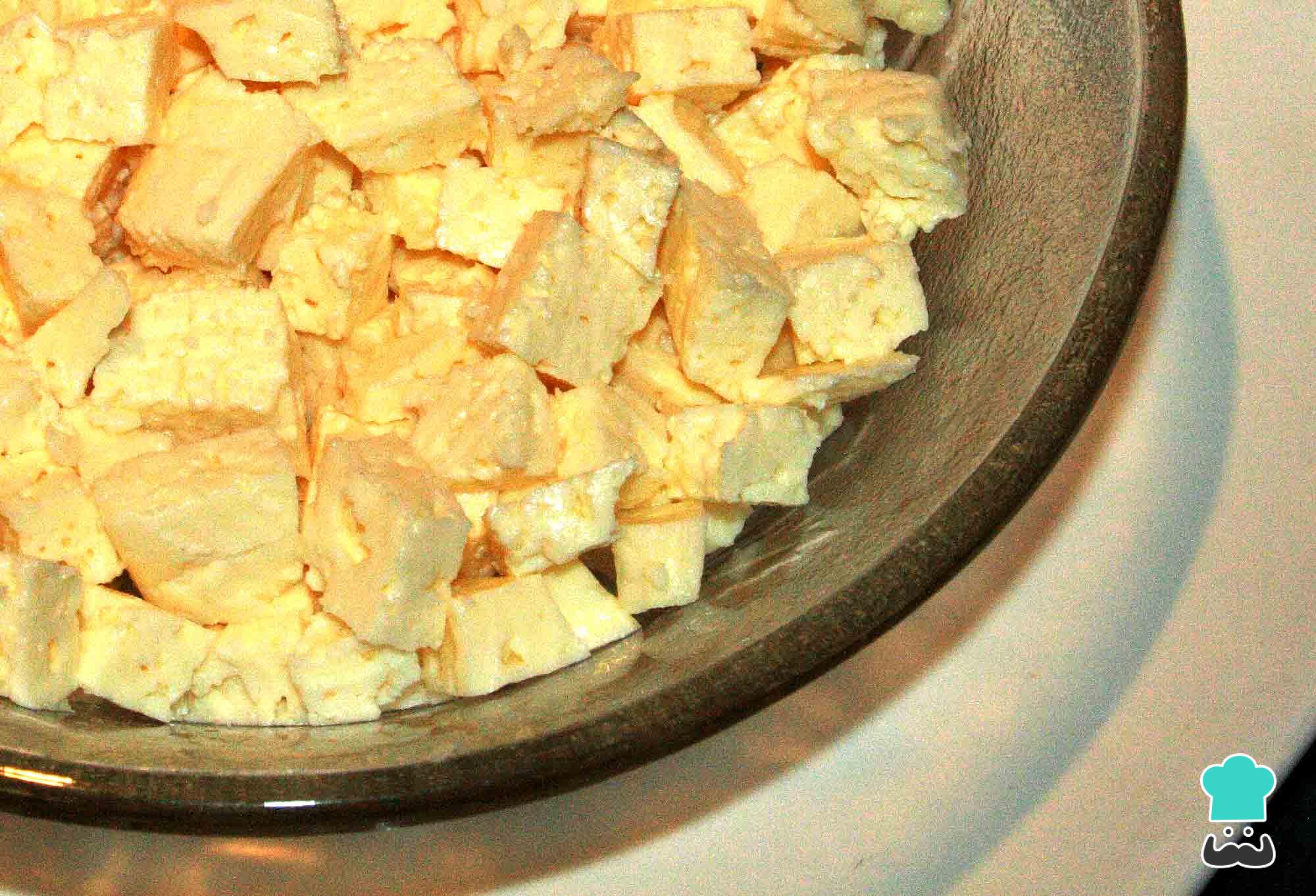 Pica el queso en cuadritos pequeños y reserva.