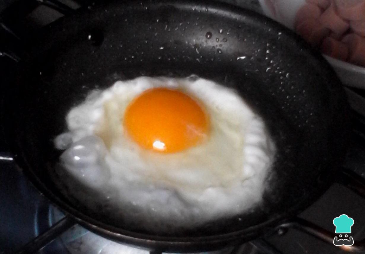 En un sartén a fuego bajo, con aceite, cocinar un huevo entero durante 3 minutos tapado. Agregar un poco de sal.
