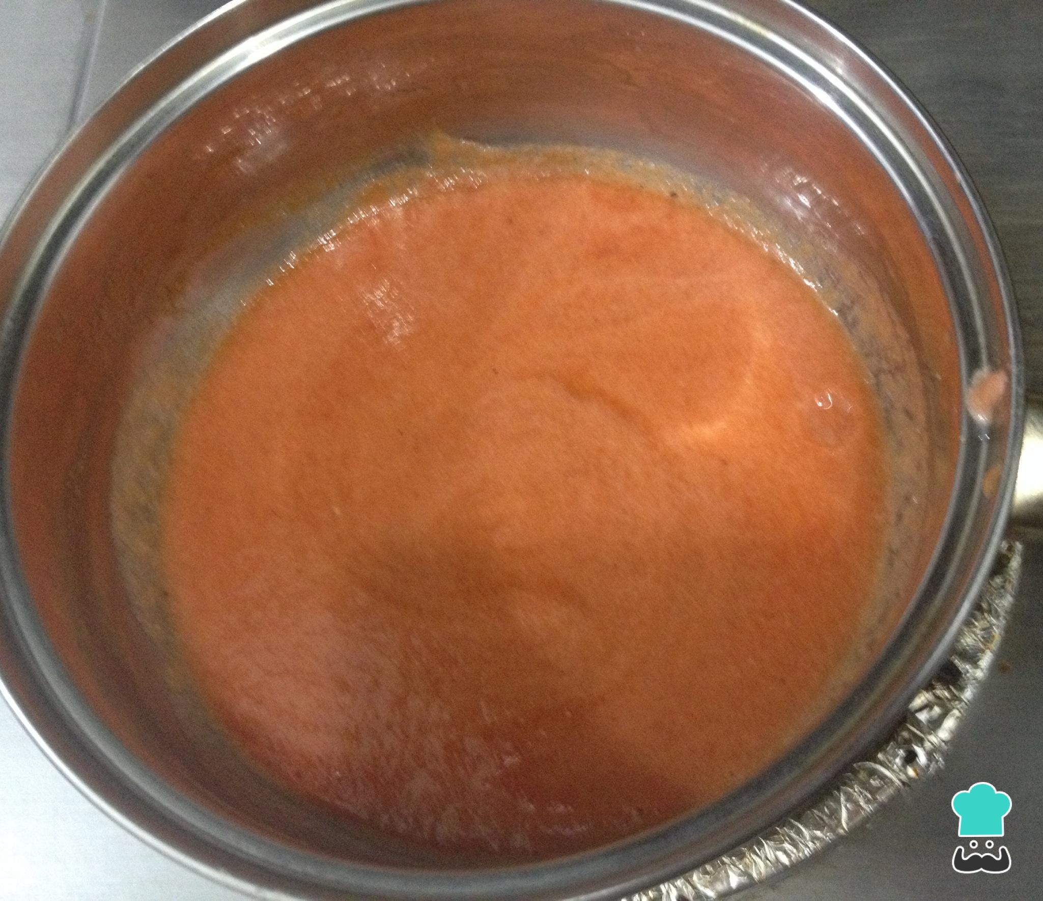Colar y agregar la salsa en una olla. Cocinar a fuego bajo durante 20 minutos, hasta obtener consistencia de salsa, salpimentar. Si es necesario, para regular la acidez del tomate del arroz a la cubana original, puedes agregar un poco de azúcar.