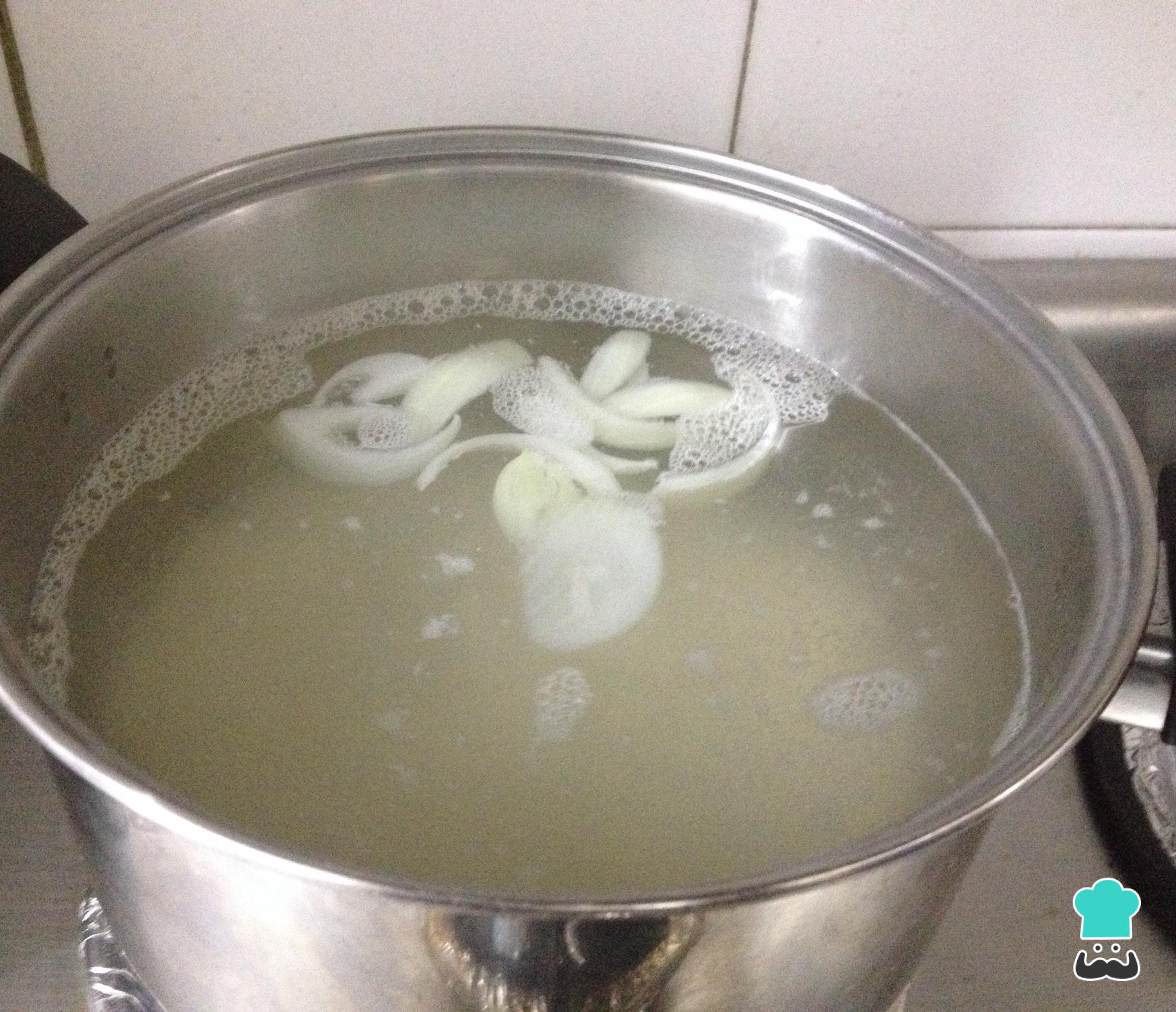 Para hacer el arroz suelto del auténtico arroz a la cubana, en una olla agregar el agua con abundante sal, recortes de cebolla y un diente de ajo Deja que hierva y añade el arroz, revolviendo constantemente durante 15 minutos hasta que el grano esté al dente.