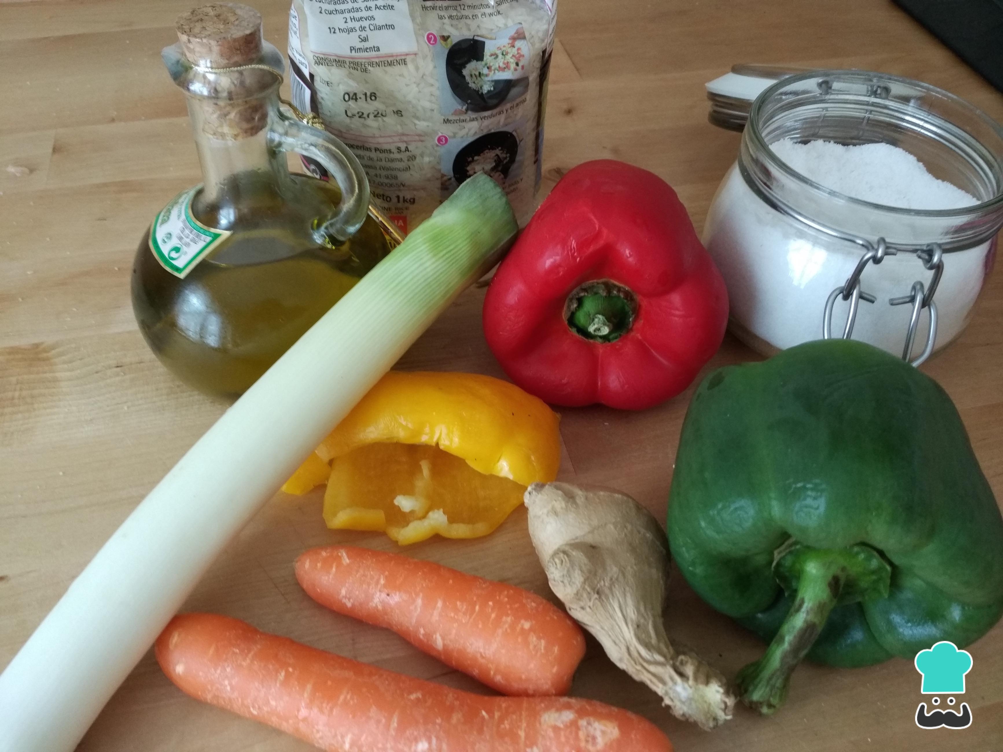 Reunimos todos los ingredientes para preparar el arroz basmati con verduras.