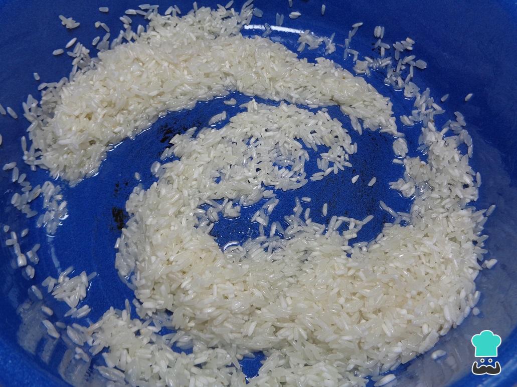 Ahora tomamos el arroz y lo vertemos sobre una cacerola con el aceite previamente calentado, dejamos que se fría hasta que se note ligeramente dorado, y movemos constantemente para evitar que se queme.