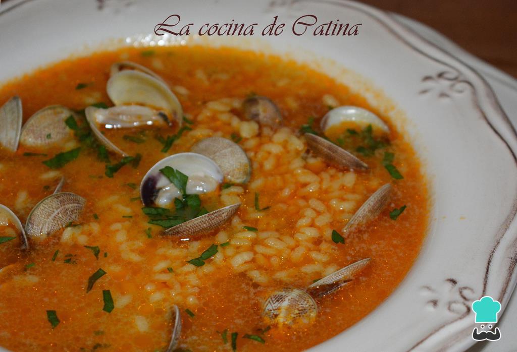 Cómo hacer Arroz caldoso con almejas y cebolla: