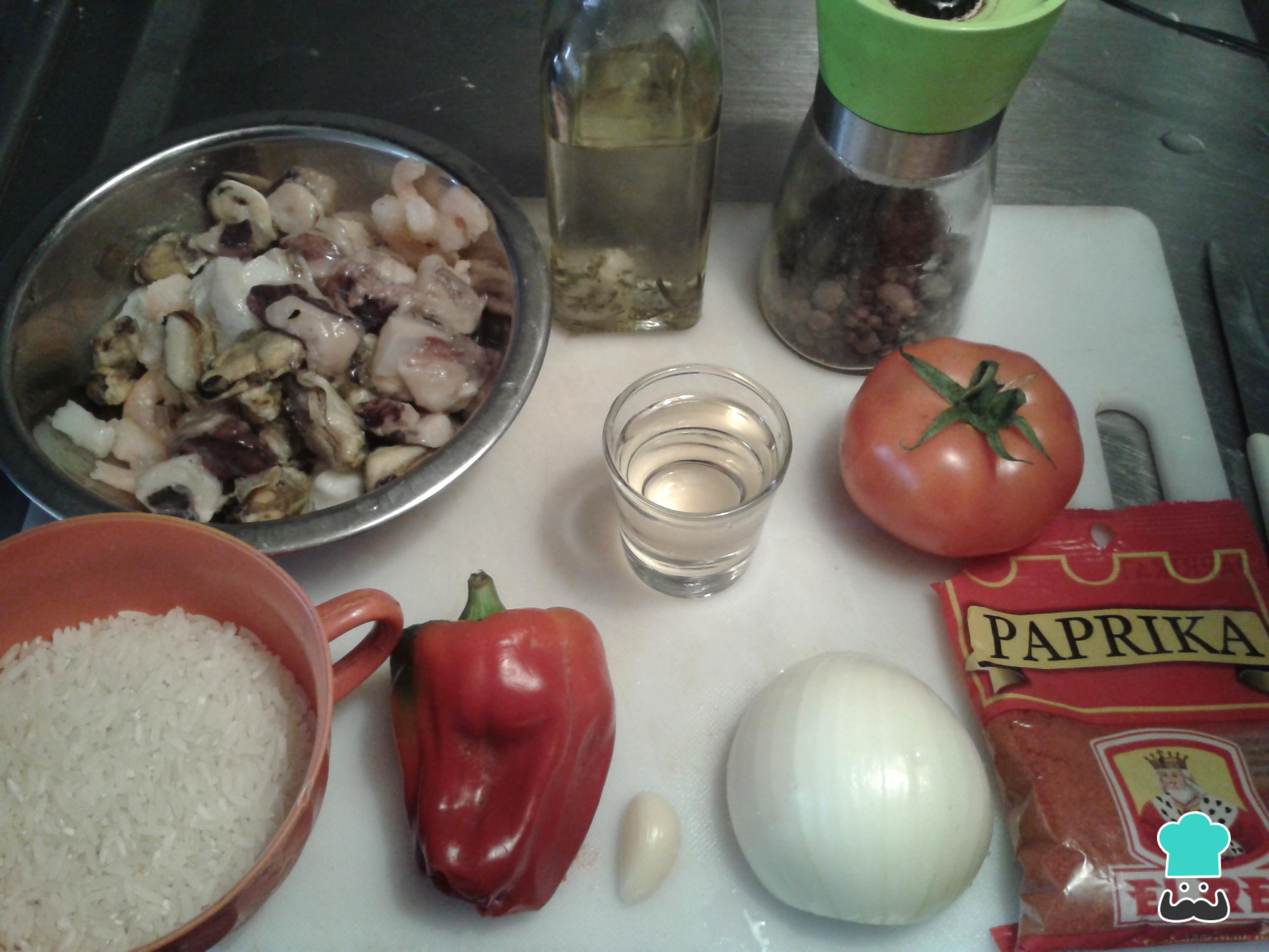 Alistar todos los ingredientes para preparar nuestro arroz caldoso casero. El mix de mariscos congelado puedes comprarlo a tu gusto, yo he utilizado uno que viene con mejillones, calamares, pulpo y gambas.