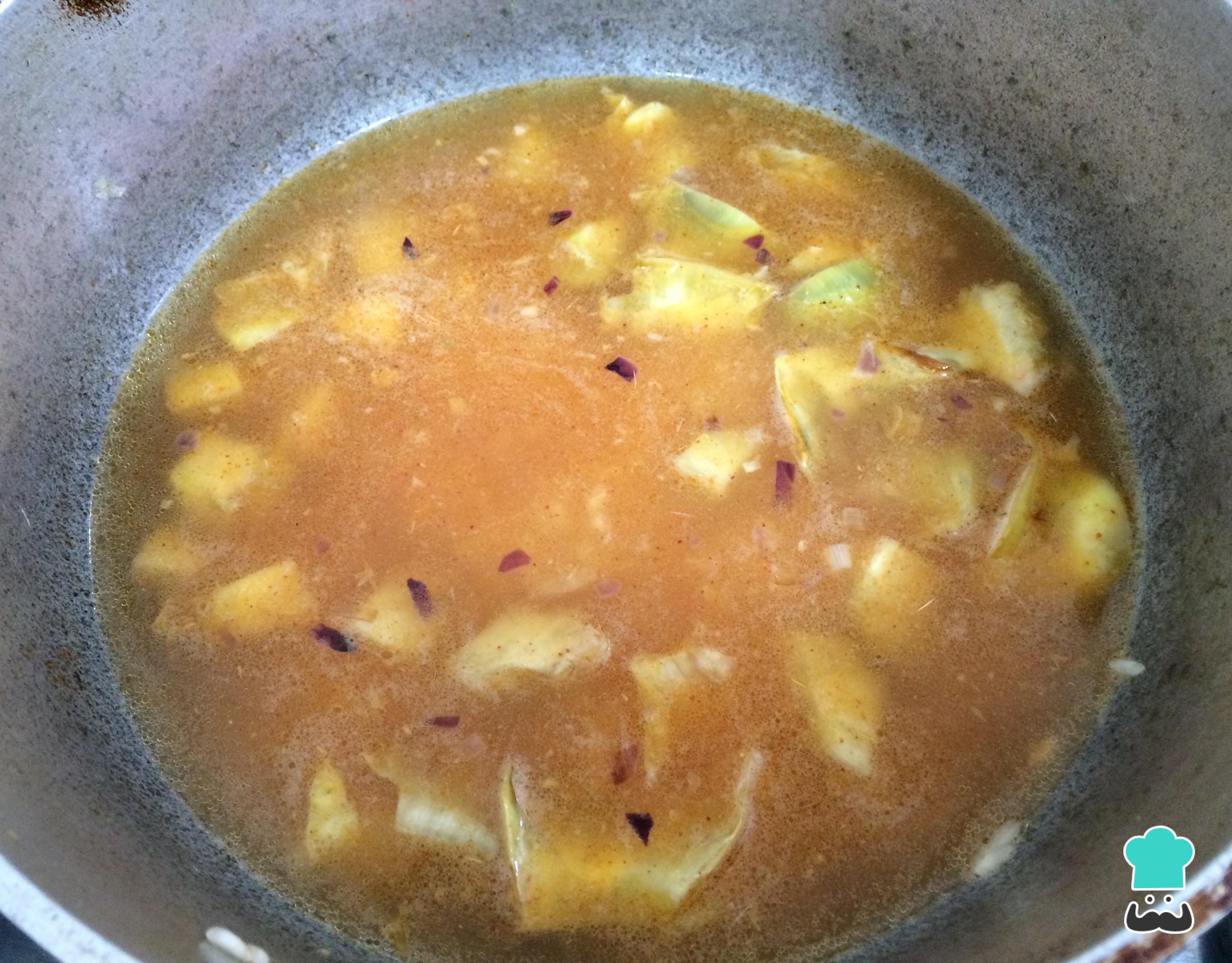 Añadir dos tazas de agua y rectificar sabor con sal. Cocinar el arroz a fuego medio hasta que el agua evaporé, tapar bajar el fuego y cocinar 25 minutos.