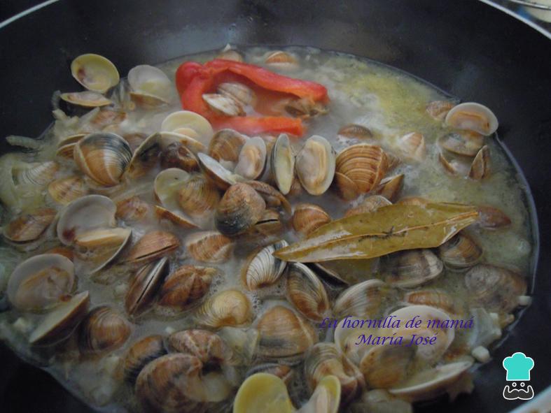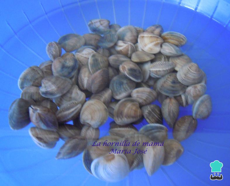En primer lugar debemos limpiar las almejas, las ponemos en agua con un poco de sal y las dejamos en reposo para que suelten la arena.