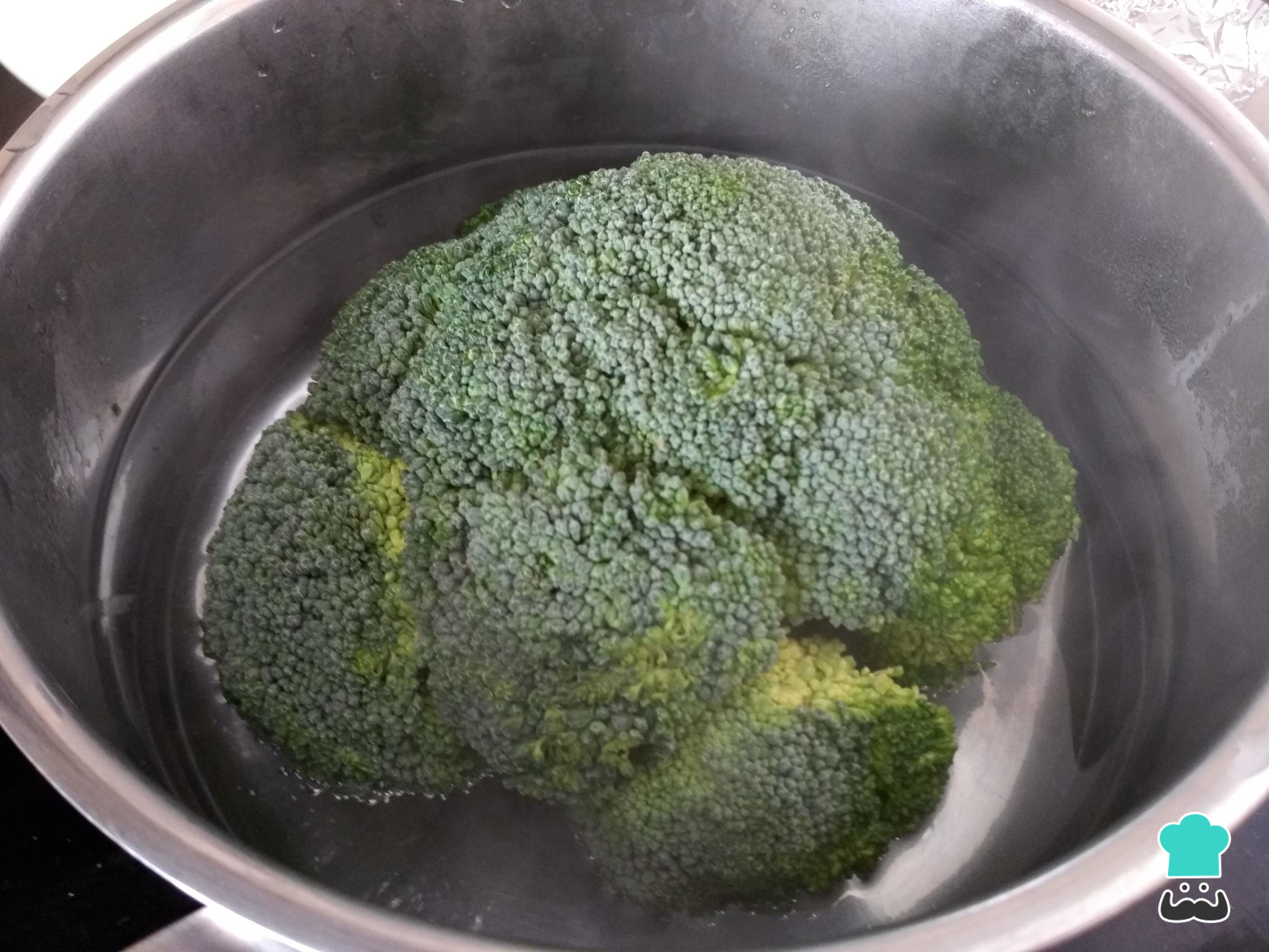 En primer lugar, cocemos el brócoli en abundante agua hirviendo con un poco de sal. Lo dejamos cocer durante 10 minutos, escurrimos y reservamos.