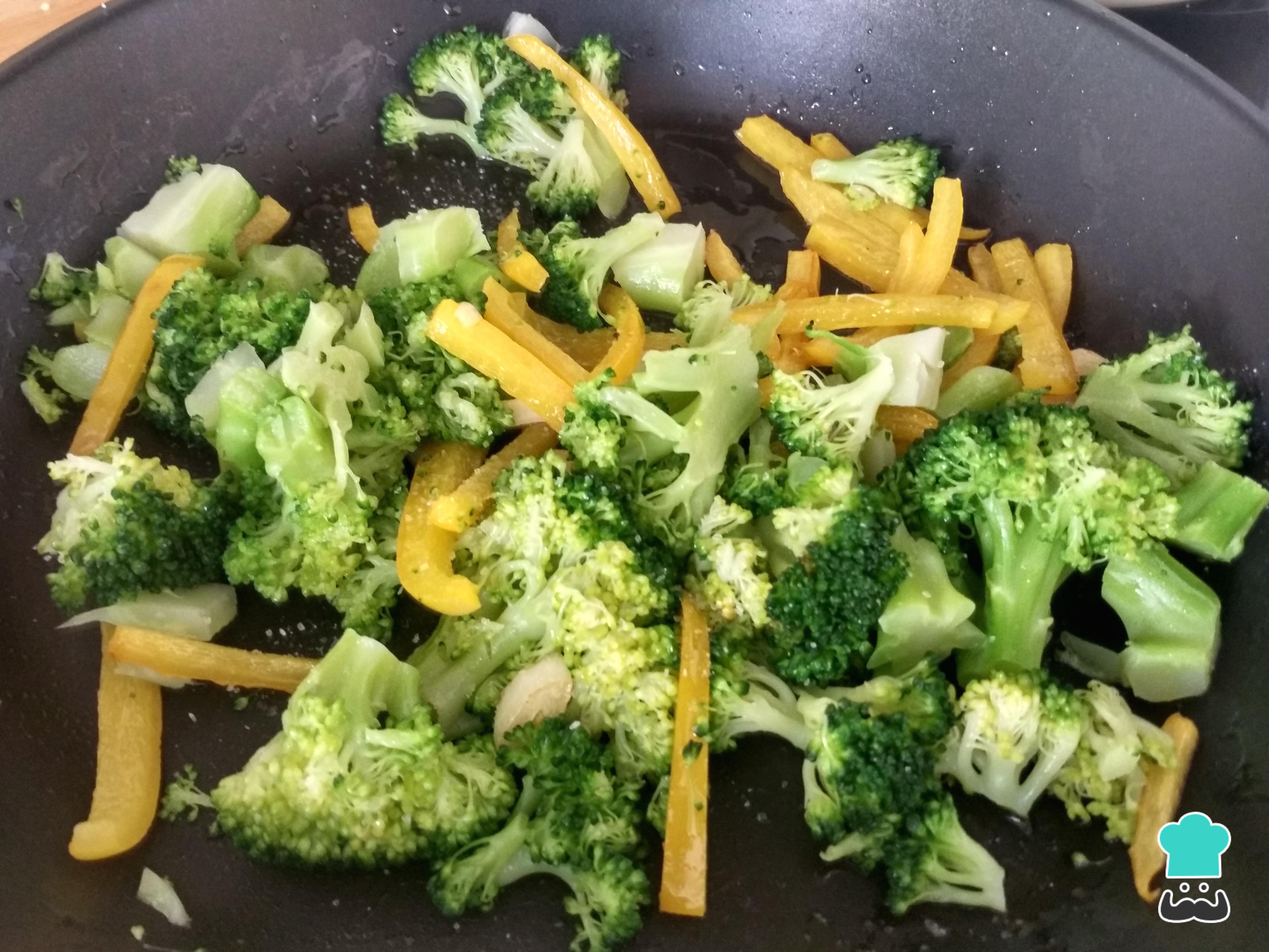 A continuación, añadimos el brócoli cocido y cortado en arbolitos, y ponemos un poco de sal. Dejamos cocinar durante un par de minutos.