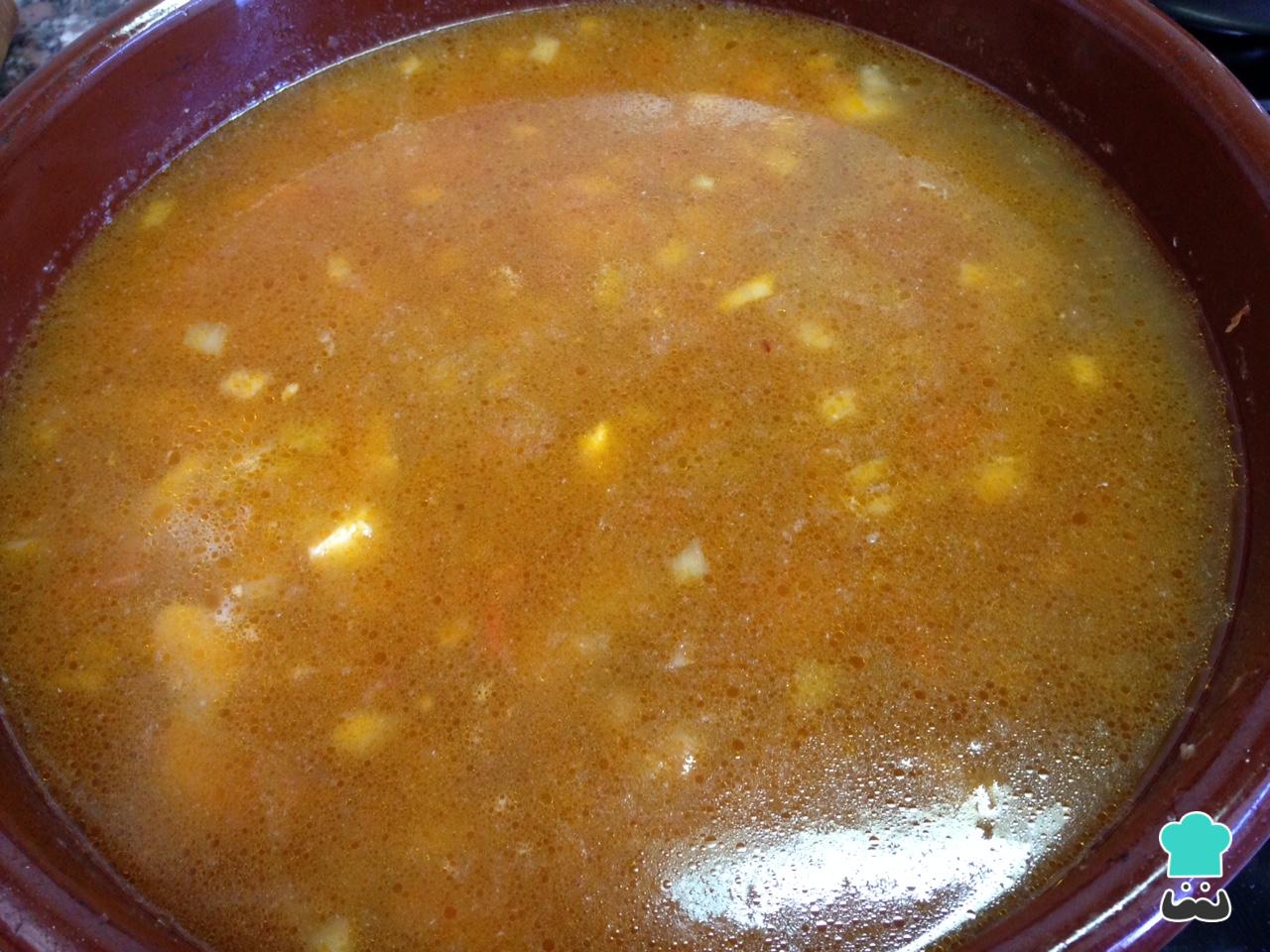 Agregamos también el azafrán y la pimienta negra, y a medida que el arroz se vaya bebiendo el caldo iremos agregando más. Podemos hacerlo muy o poco caldoso, según nuestras preferencias. Para el arroz seguiremos los consejos de cocción de la marca escogida, normalmente con entre 15 y 20 minutos es suficiente.