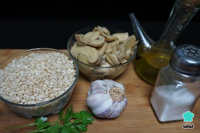 Preparamos los ingredientes para el arroz salteado con los champiñones, ajo y perejil.