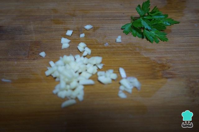 Picamos el ajo y el perejil finamente, tal y como se muestra en la fotografía.