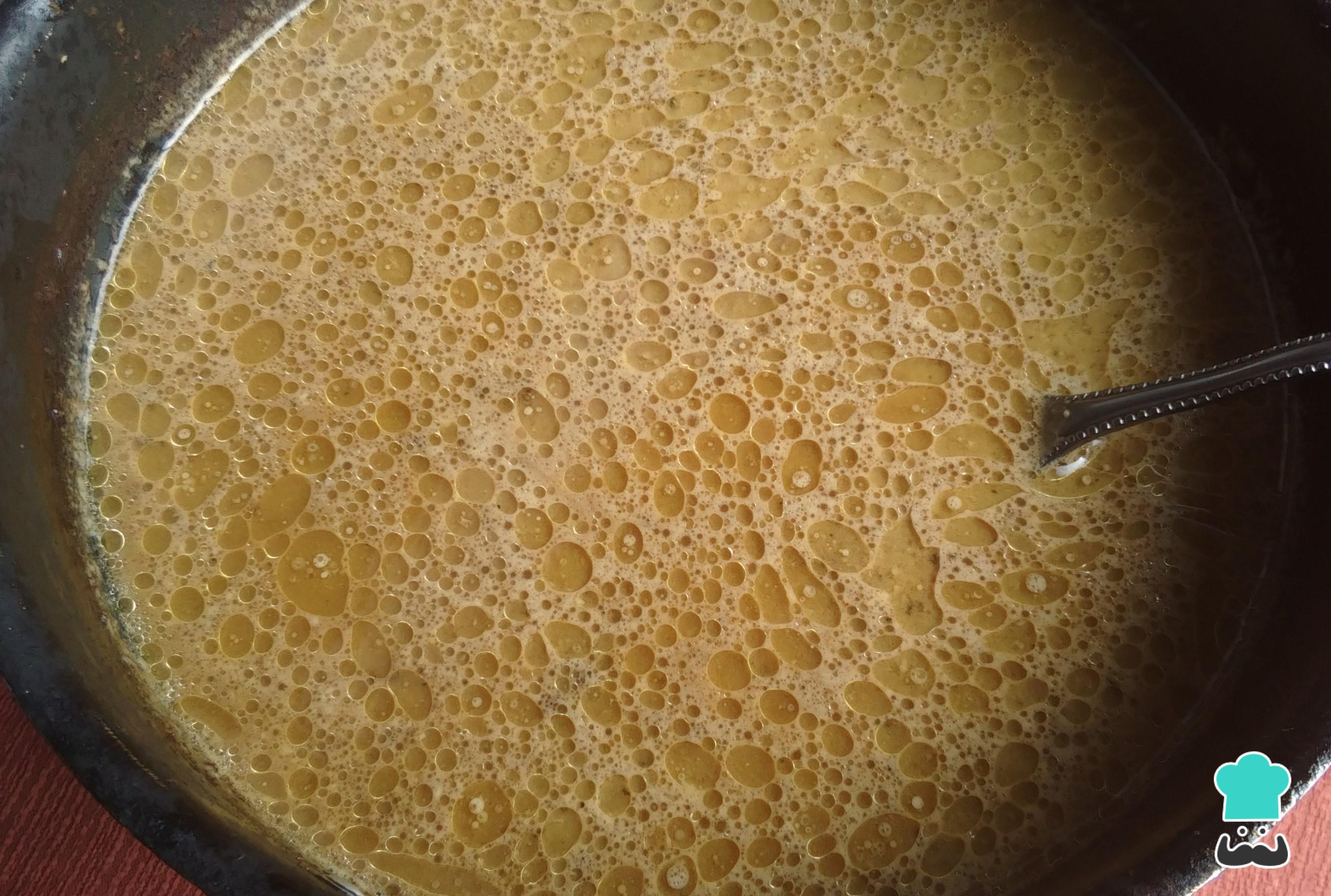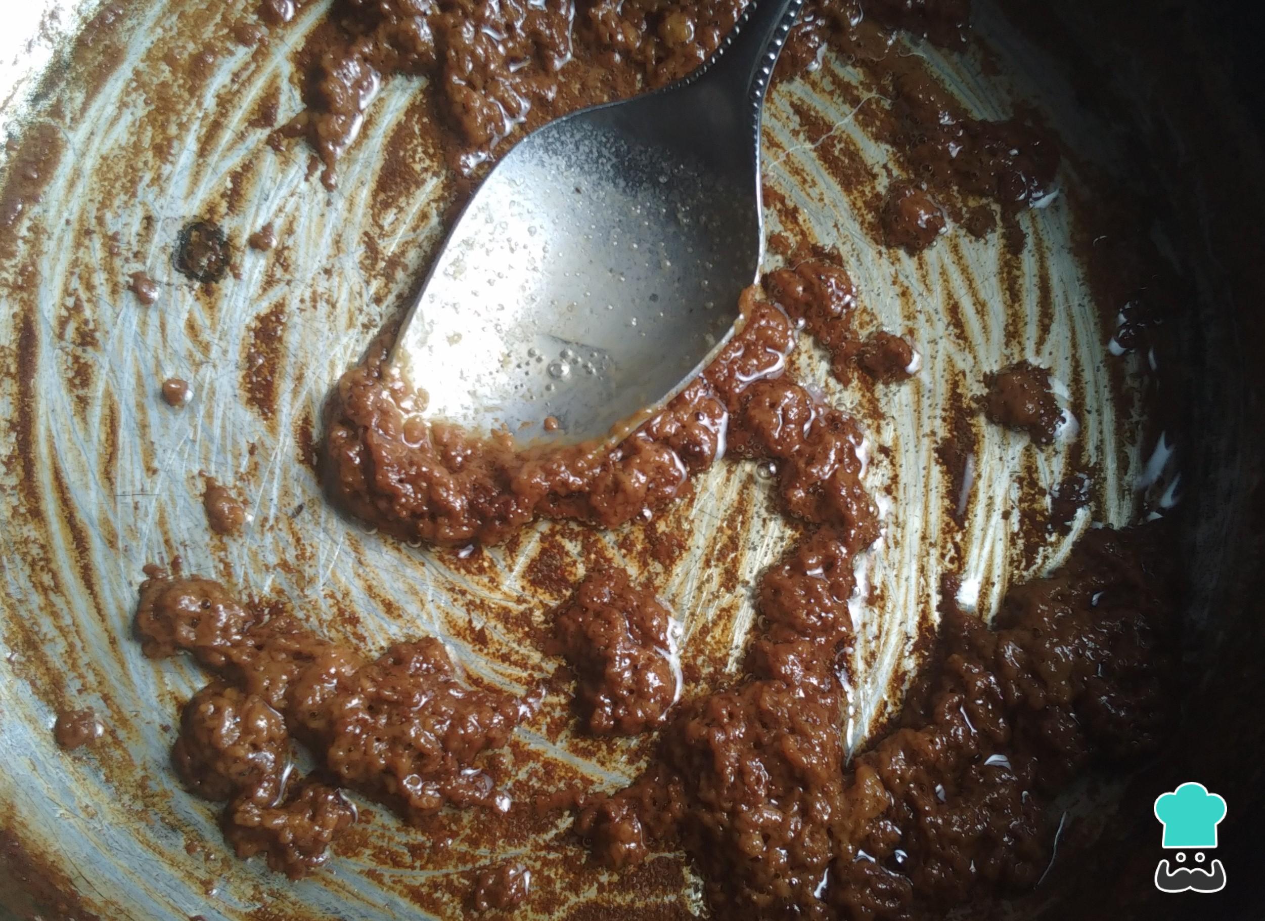 Deja que reduzca hasta que desaparezca el líquido y quede el aceite del coco (transparente) y los sólidos de la leche en forma de pequeños chicharrones de color marrón. Esto es el titoté.