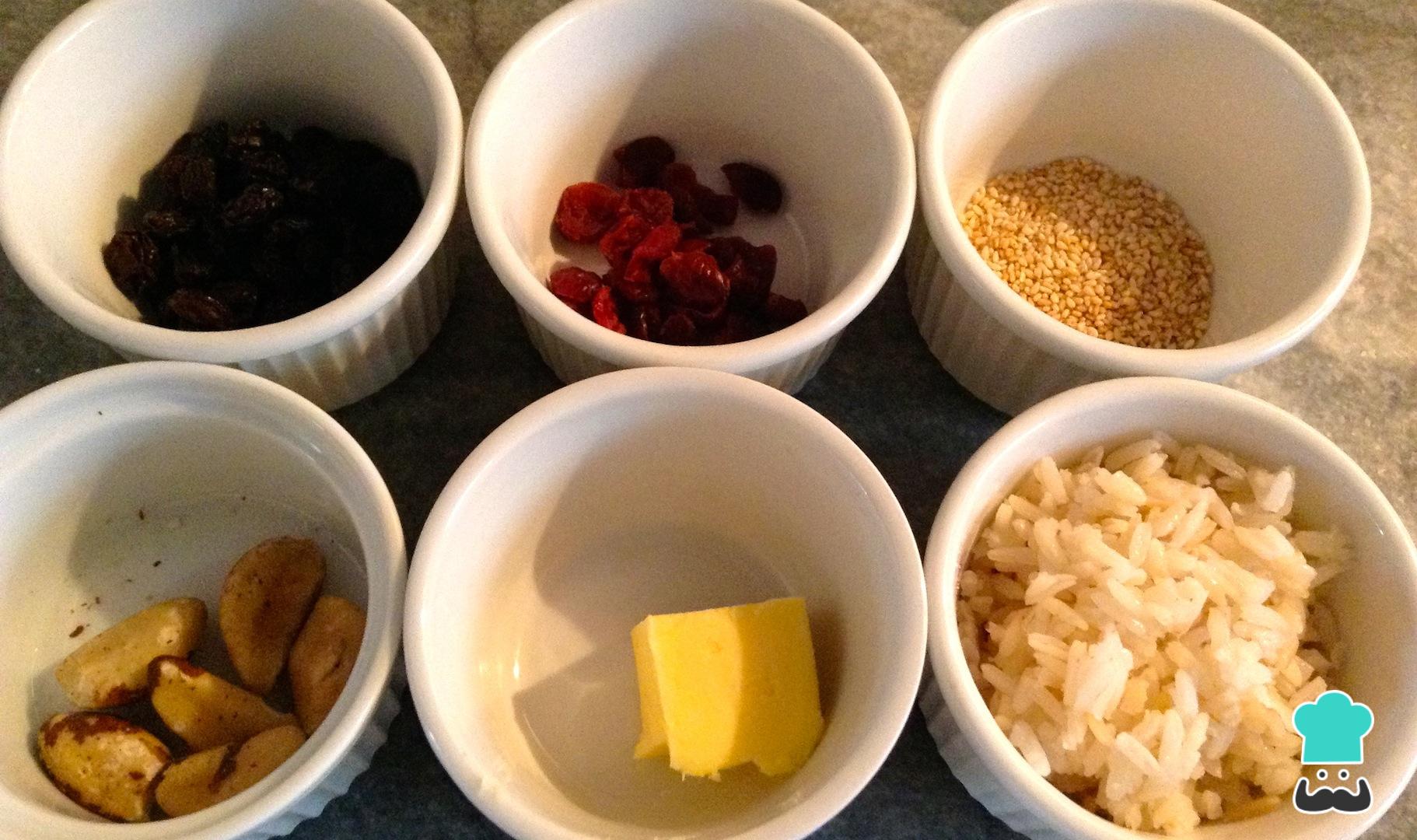 Truco: Si deseas añadir más frutos secos como maní, piñones, etc., puedes hacerlo.