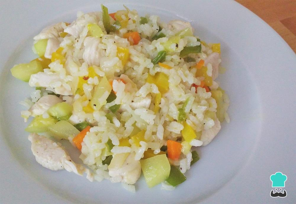 El arroz con pollo y verduras se puede tomar como plato principal acompañado de una ensalada ligera de pepino y de un postre de manzana con yogur. ¡Buen provecho!