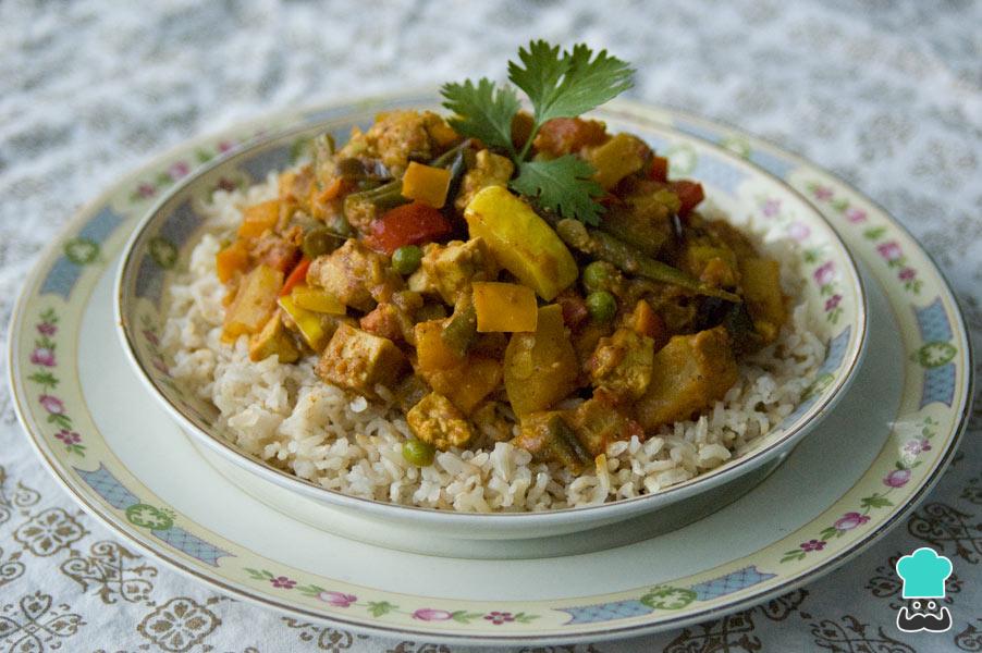 Cómo hacer Arroz con verduras al curry y setas: