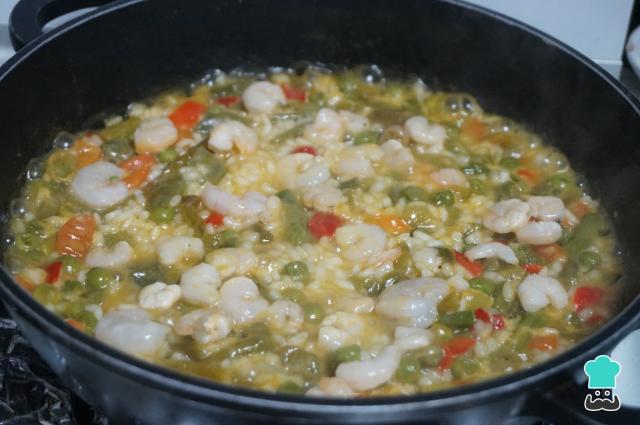 Cómo hacer Arroz con verduras y gambas: