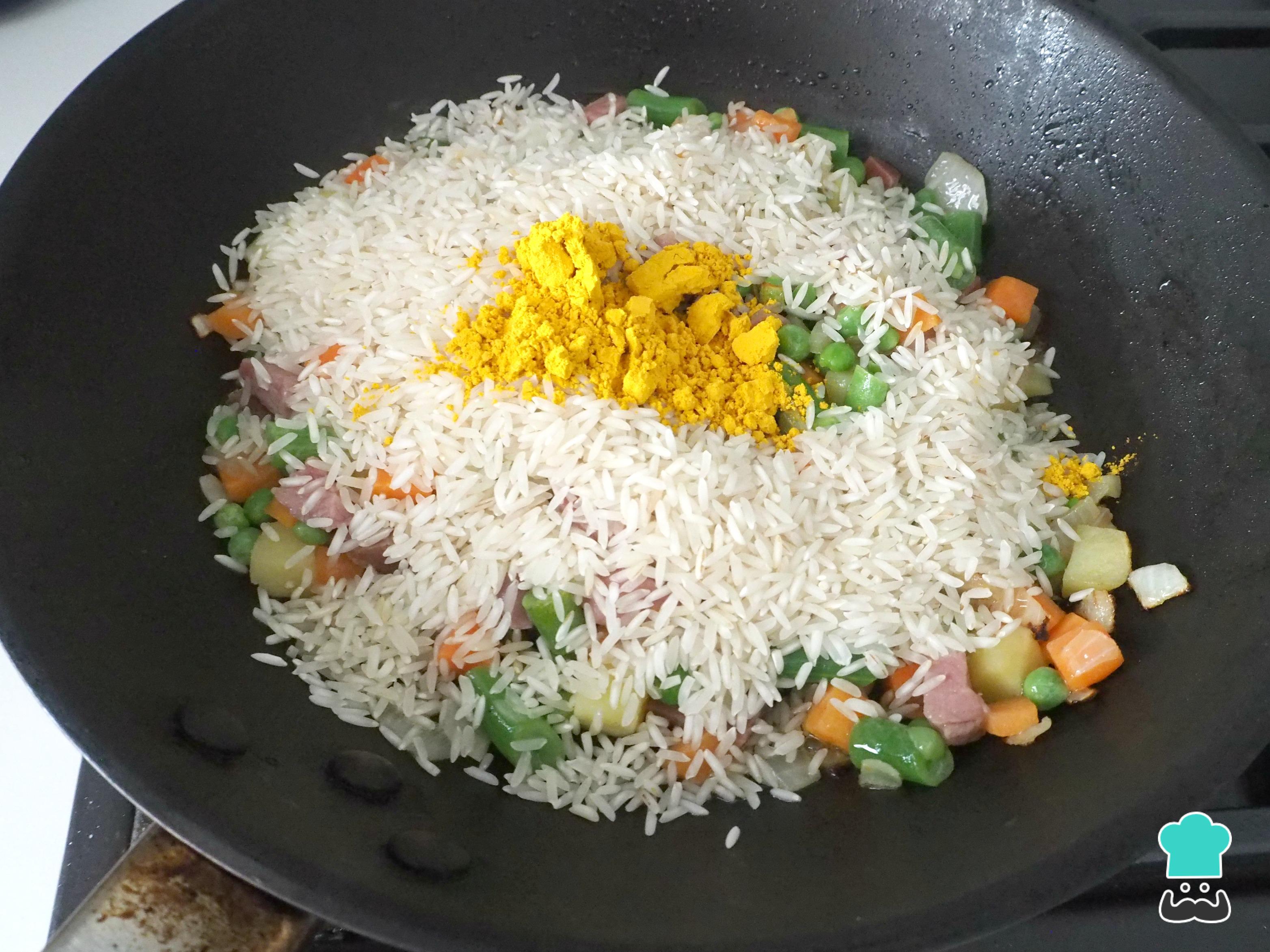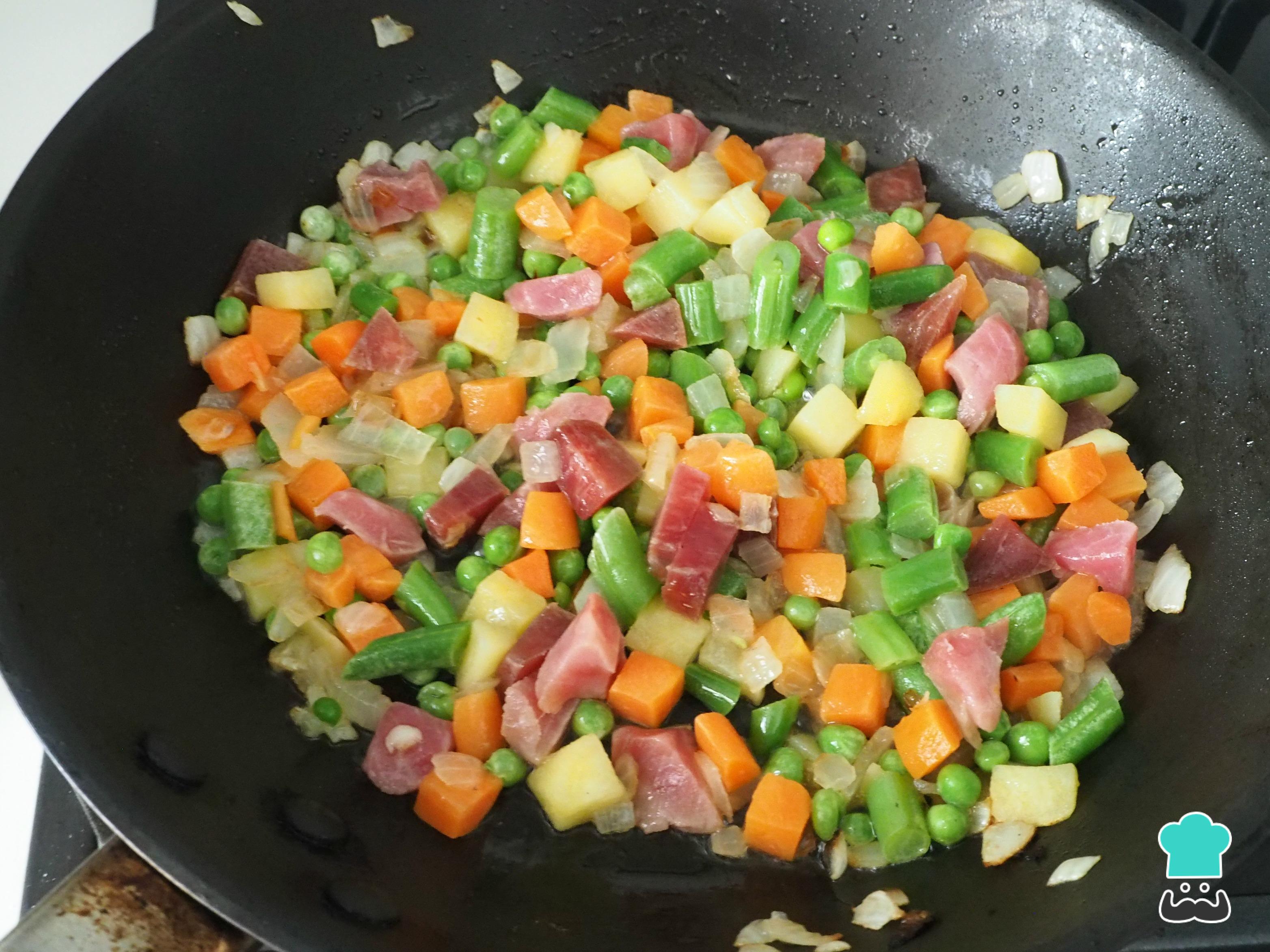 Cómo hacer Arroz con verduras y jamón serrano: