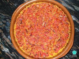 En una cazuela de barro, poner el arroz y cubrir con el sofrito anterior.