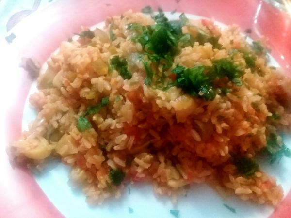 Yo he utilizado cebolla, pimiento verde, pimiento rojo, ajo y tomate para hacer el sofrito pero tú puedes utilizar otras cosas y montarte tu propio arroz integral con verduras y champiñones a tu gusto. ¡Anímate y disfruta comiendo!