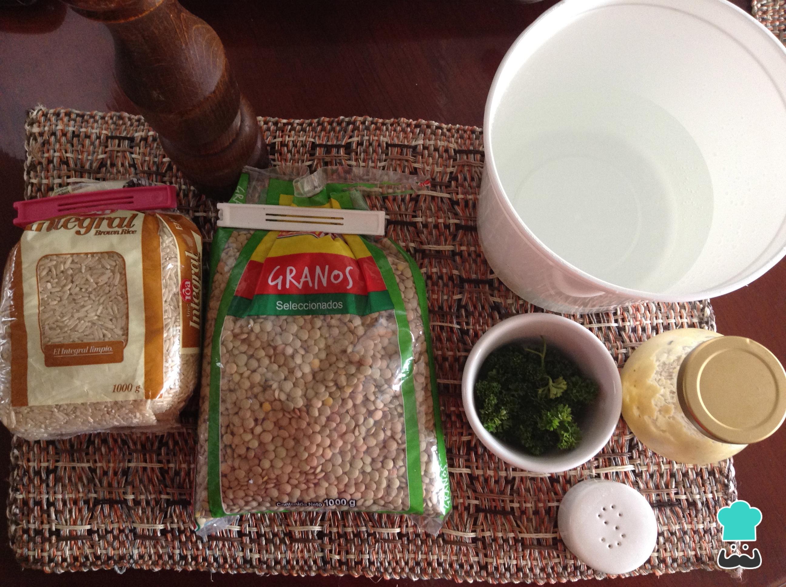 Para empezar a realizar nuestra receta de arroz integral con lentejas, el primer paso es prealistar todos los ingredientes.