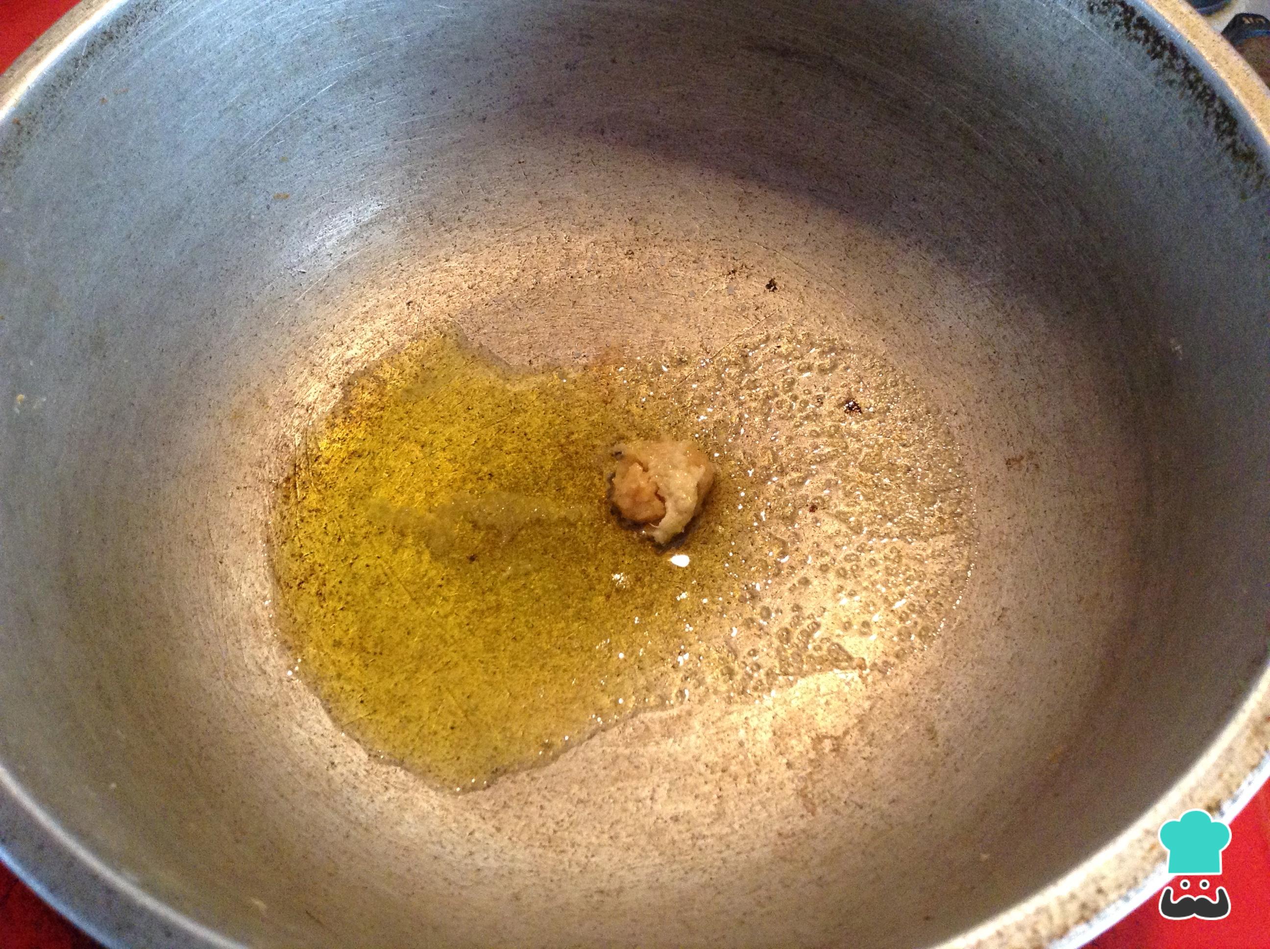 En una olla honda adiciona un cucharada de aceite de oliva o girasol (el que más utilices en tu cocina) un poco de pasta de ajo y sal al gusto.