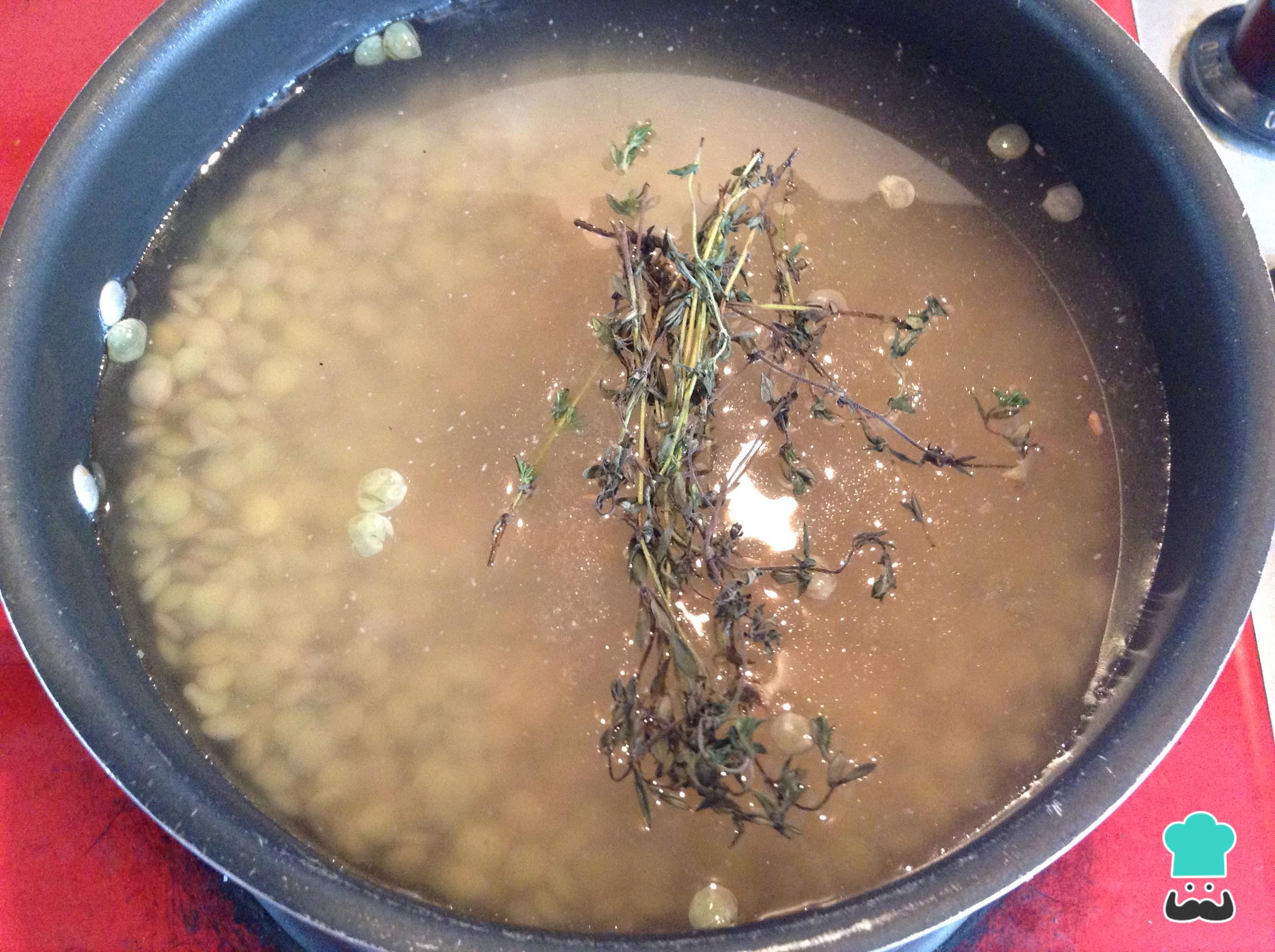 Para seguir con la receta de arroz integral con lentejas en una olla aparte agrega las lentejas retirando el agua donde la hidratamos y añadiendo agua potable nueva, agrega tus condimentos preferidos en mi caso tomillo fresco, sal, pasta de ajo y pimienta al gusto.Cocinarla durante unos 20 a 30 minutos aproximadamente por cada taza de lentejas que tengas.