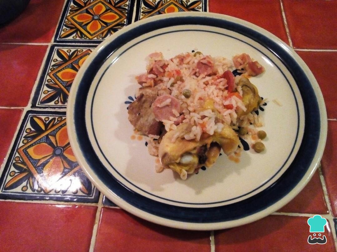 Hoy vamos a preparar un arroz con pollo y costilla, por eso le llamamos arroz mixto porque llevará carne de dos tipos, además de unas cuantas rodajas de salchichas, ¡delicioso!