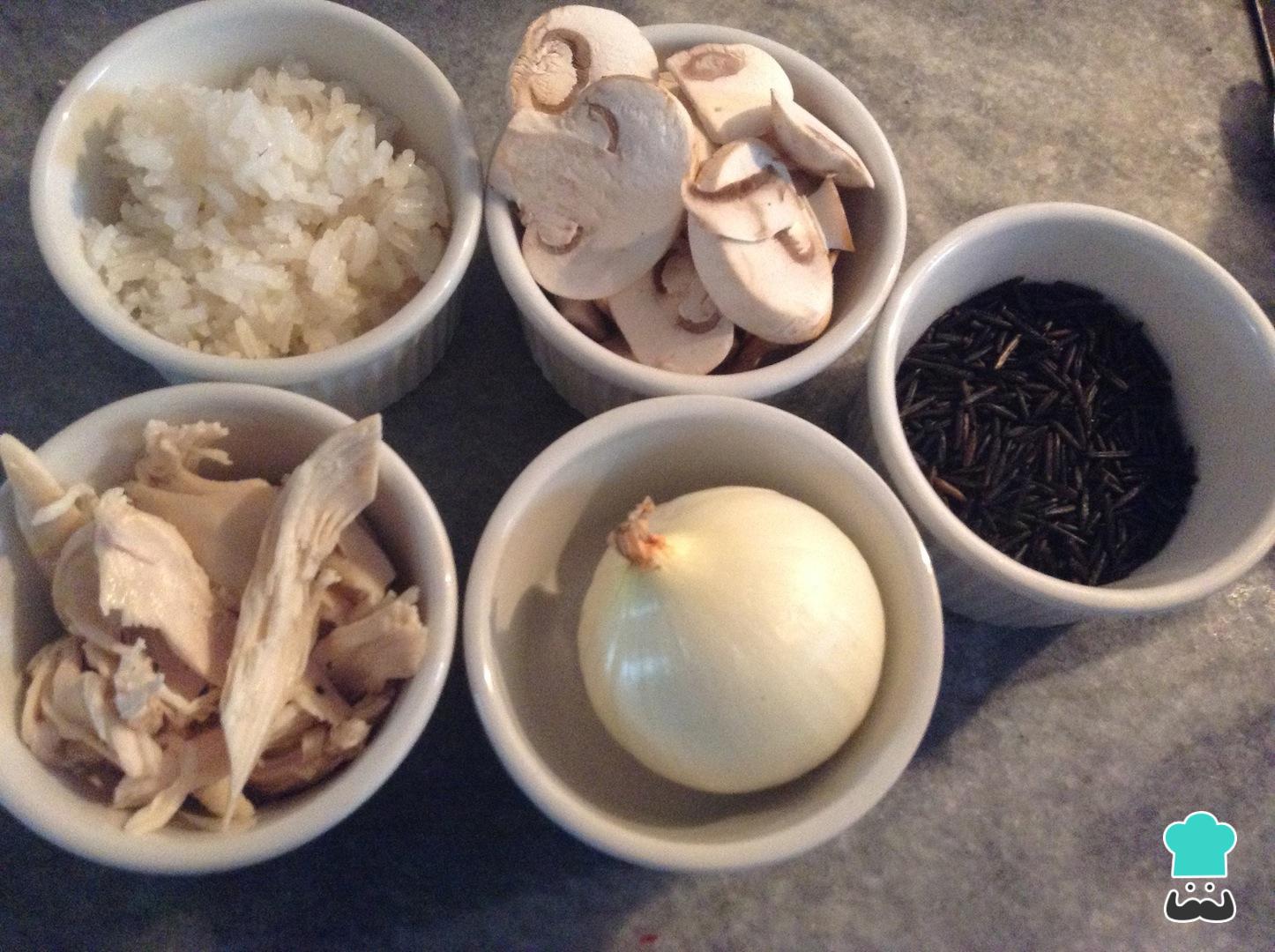 Nuestro primer paso para realizar la receta de arroz con pollo y setas es prealistar los ingredientes.