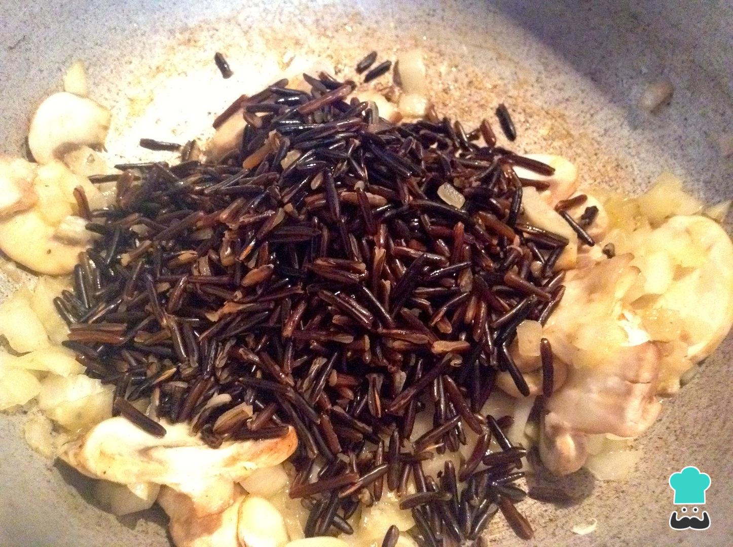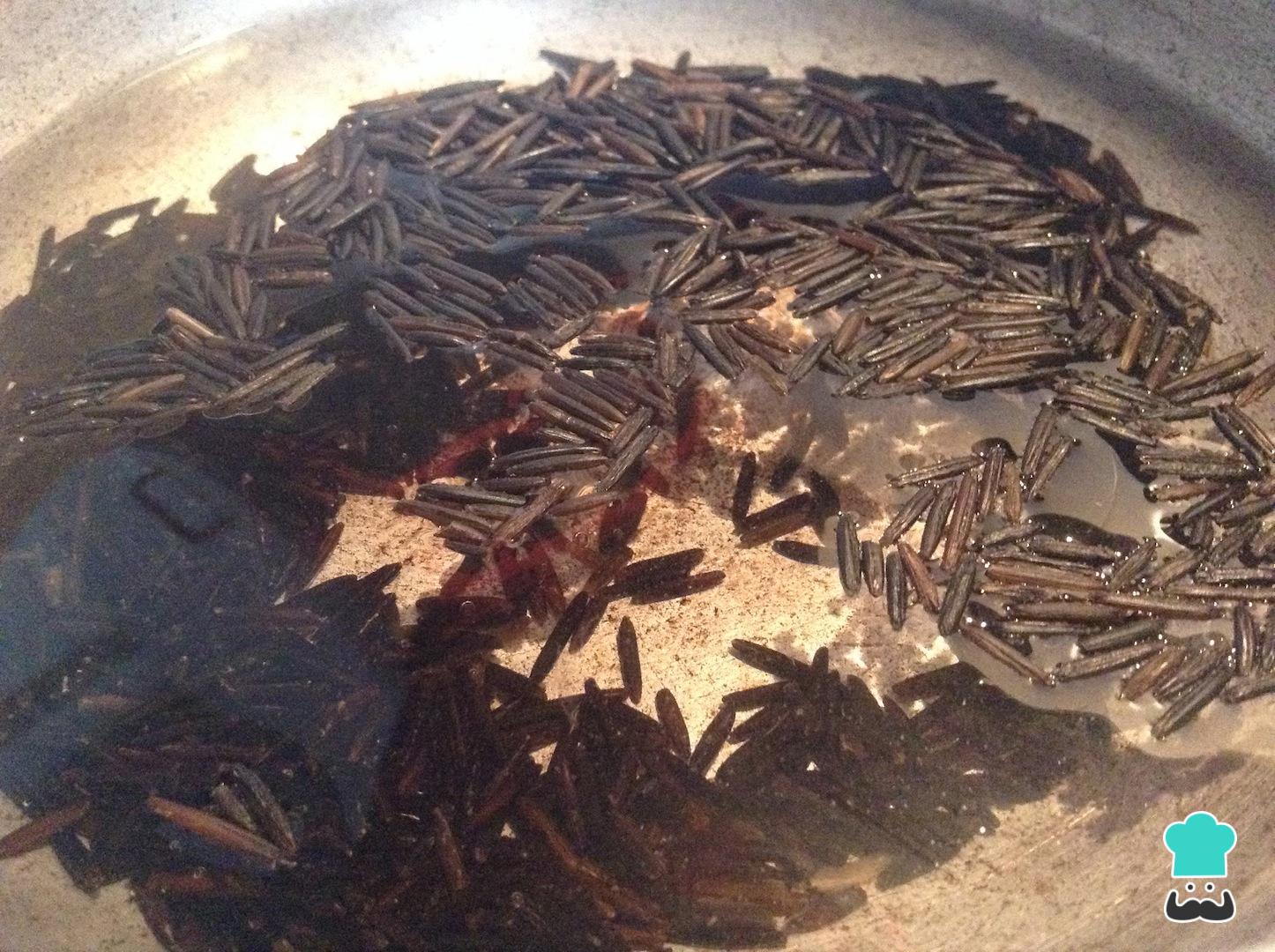Agrega el arroz salvaje a la sartén donde tenemos nuestros ingredientes y mezcla muy bien para que se integren.