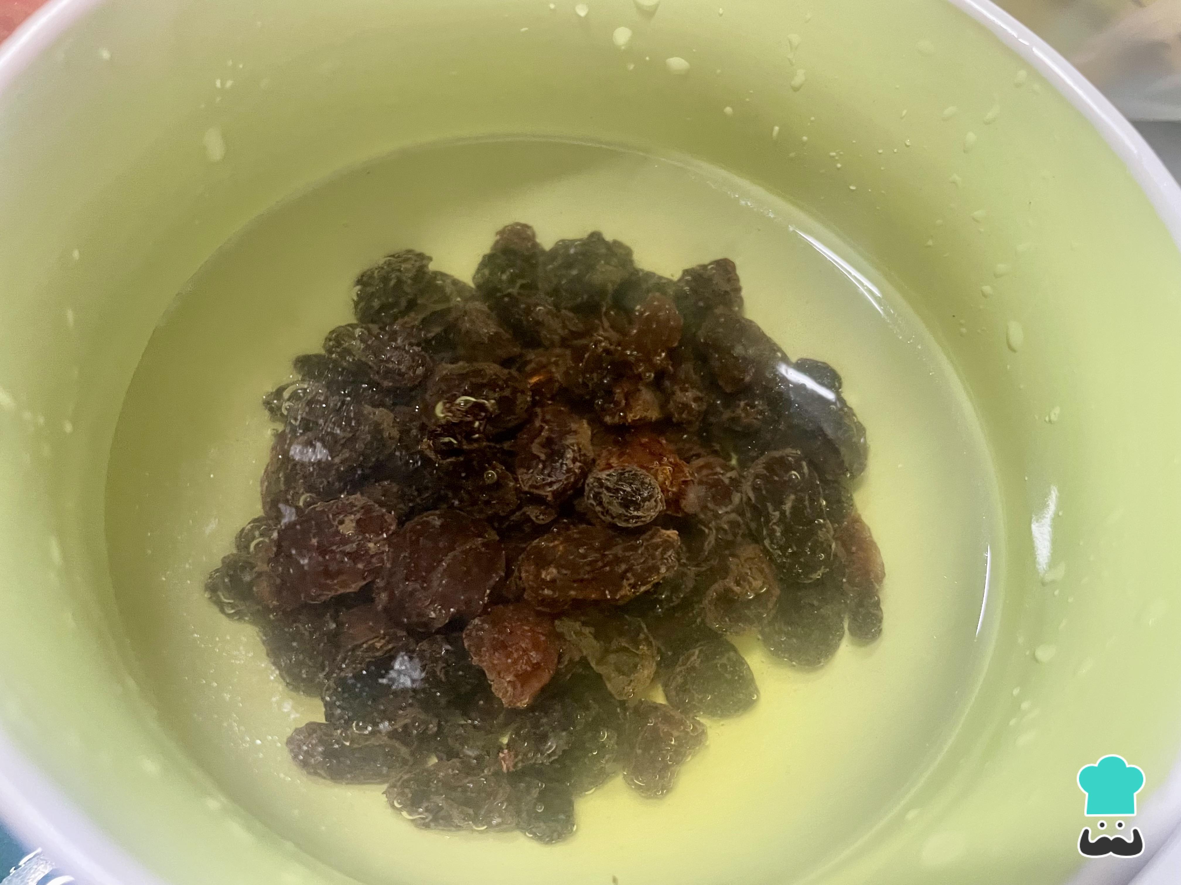 A continuación, pon las pasas en remojo con agua tibia mientras continúas con la receta de bacalao a la catalana.