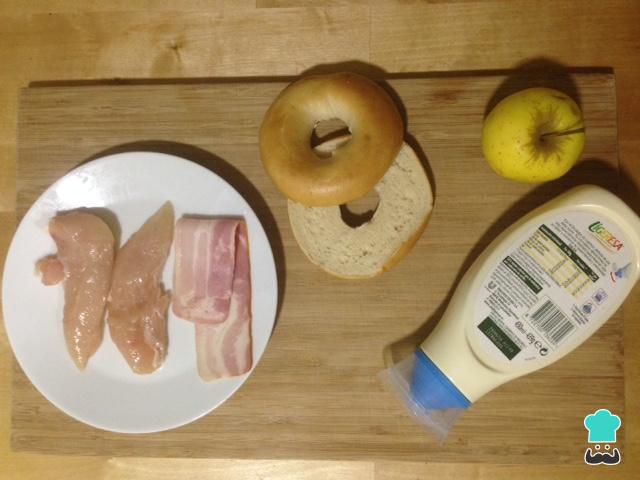 Reunimos todos los ingredientes para elaborar el bagel de pollo.